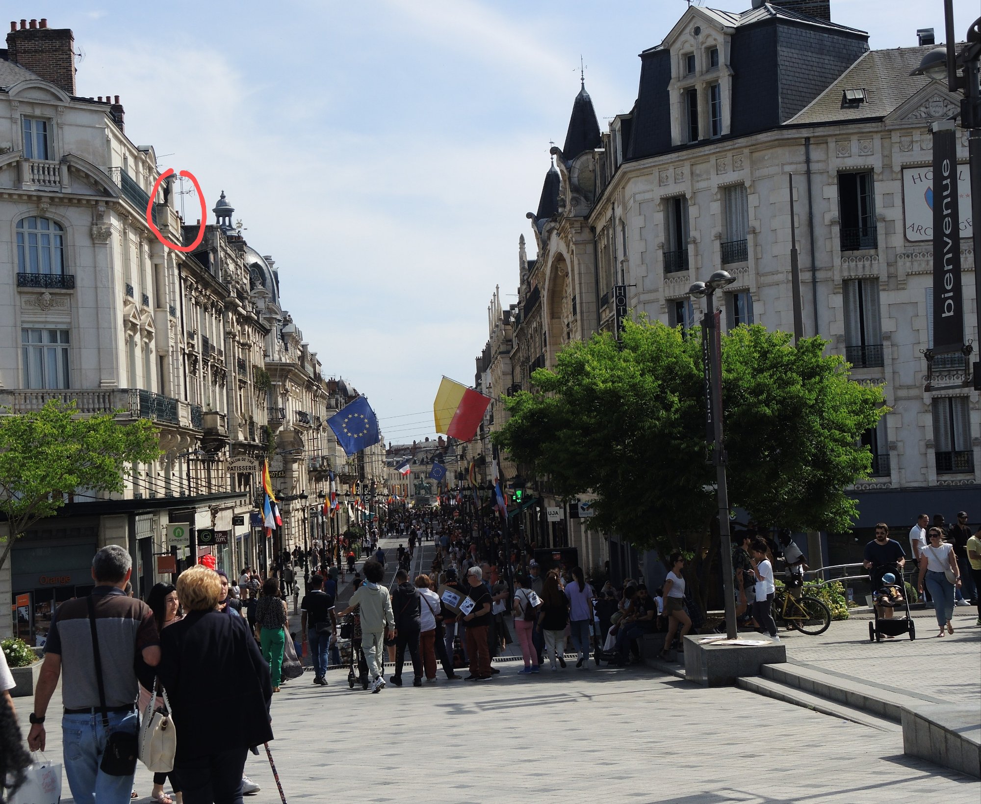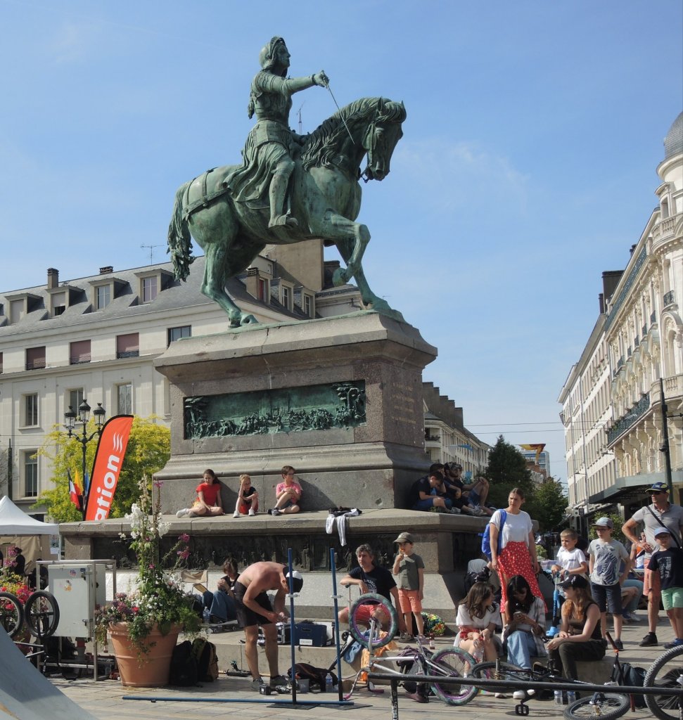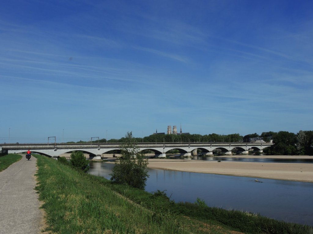 Heute sollen es nur 20 km werden. Wir wollen das Wochenende in Orléons verbringen.Sind das schon die ersten Hinkelsteine? Wir meinen, Nein.Die letzten 5 km durch das Naherholungsgebiet, quasi mitten durch die Loire.Die Türme der Kathedrale ‚Saint-Croix‘ sind in Sicht. Noch über die Brücke und ..… wir sind am Wochenmarkt, direkt am Fluss.Kerstin kümmert sich wie gewohnt um den Käse und…… Ludwig hat bei den Würsten die Qual der Wahl.Die Stadt empfängt uns mit dem neuen Radweg an der Loire….. .. großzügig……mahnend..…bunt……lebhaft.Blick aus unserem Hotelfenster auf die ‚Rue de la Republique‘. Ganz am Ende das Reiterstandbild..… Jeanne d’Arc, die Jungfrau von Orléons.