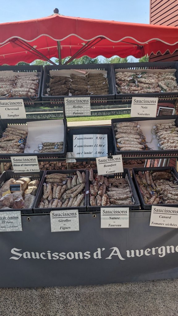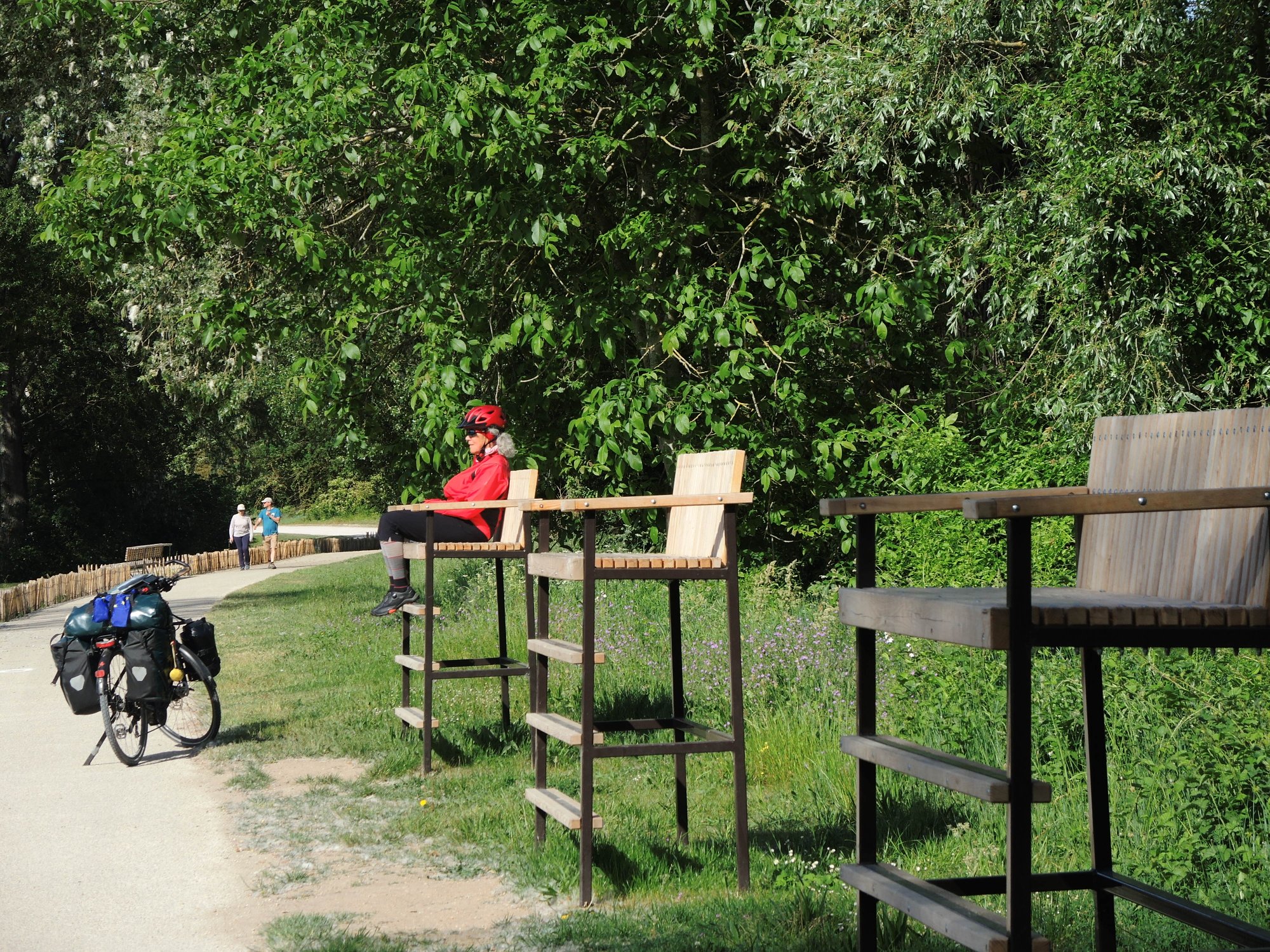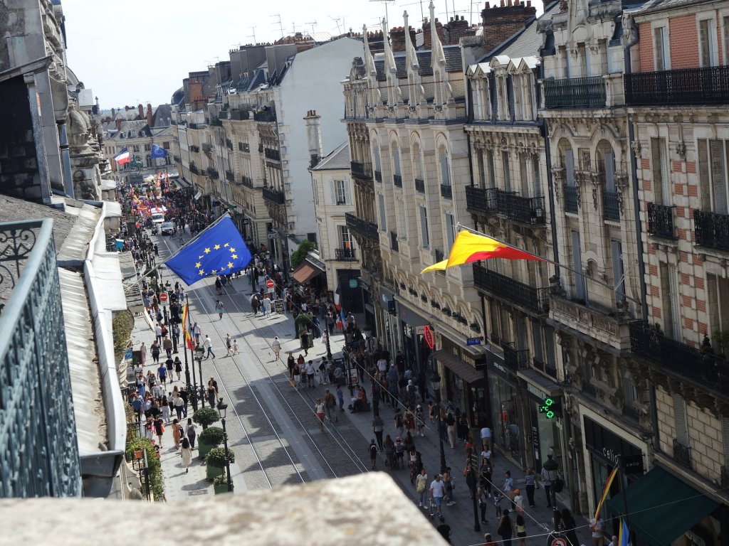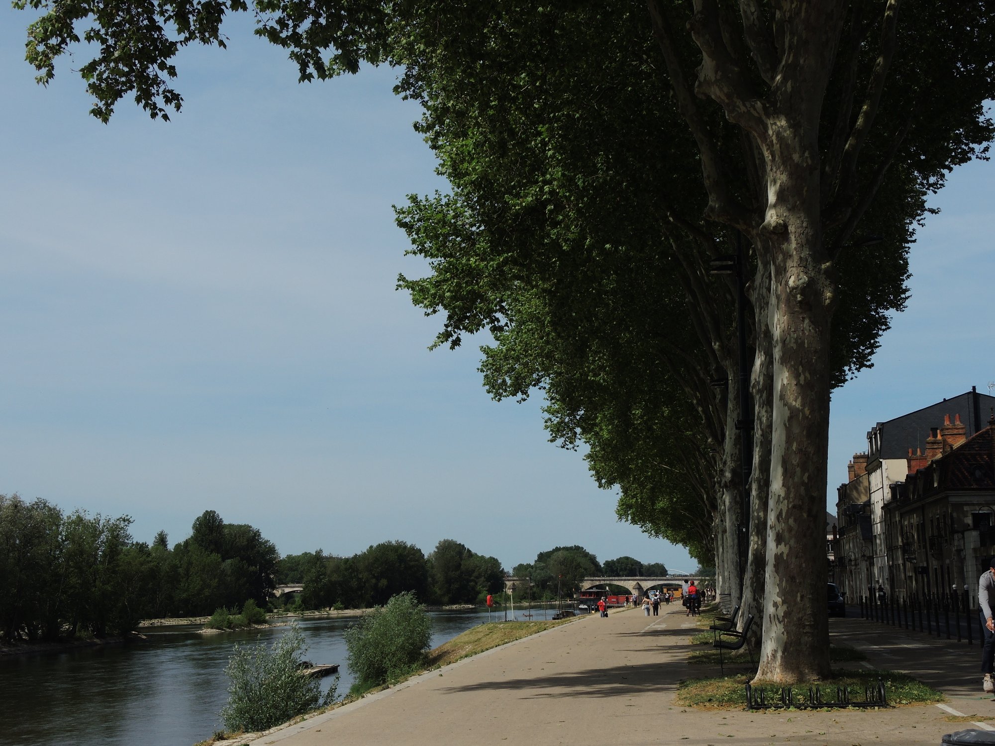 Heute sollen es nur 20 km werden. Wir wollen das Wochenende in Orléons verbringen.Sind das schon die ersten Hinkelsteine? Wir meinen, Nein.Die letzten 5 km durch das Naherholungsgebiet, quasi mitten durch die Loire.Die Türme der Kathedrale ‚Saint-Croix‘ sind in Sicht. Noch über die Brücke und ..… wir sind am Wochenmarkt, direkt am Fluss.Kerstin kümmert sich wie gewohnt um den Käse und…… Ludwig hat bei den Würsten die Qual der Wahl.Die Stadt empfängt uns mit dem neuen Radweg an der Loire….. .. großzügig……mahnend..…bunt……lebhaft.Blick aus unserem Hotelfenster auf die ‚Rue de la Republique‘. Ganz am Ende das Reiterstandbild..… Jeanne d’Arc, die Jungfrau von Orléons.