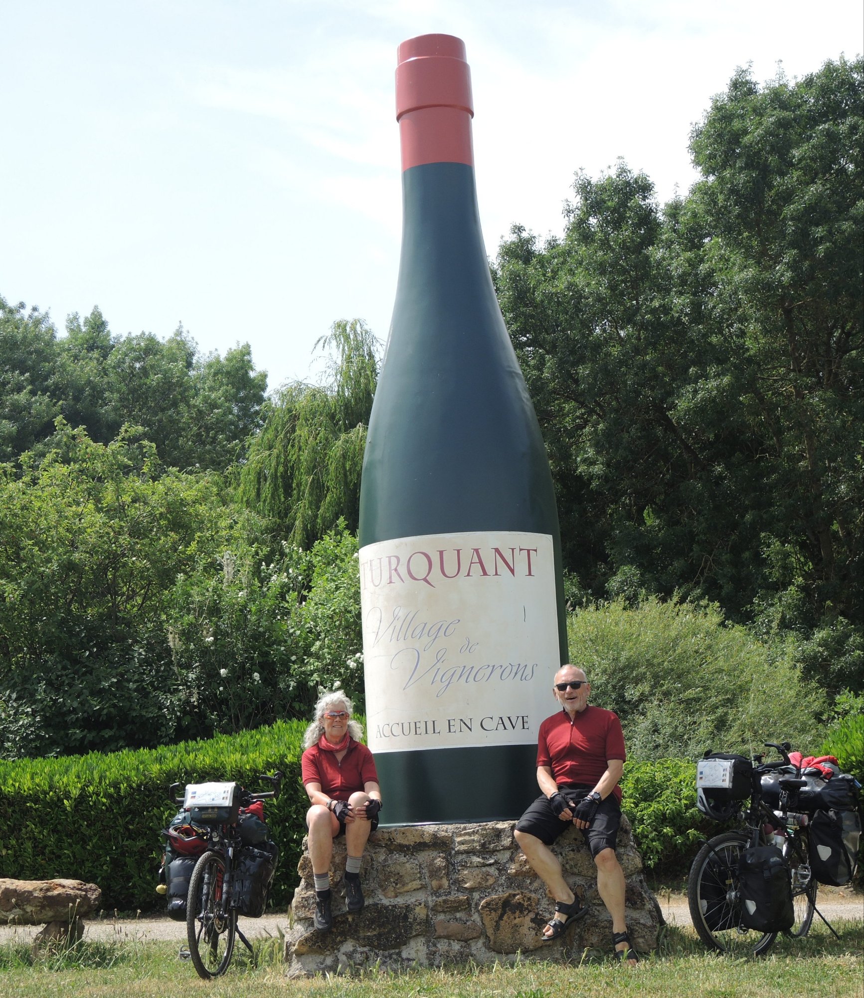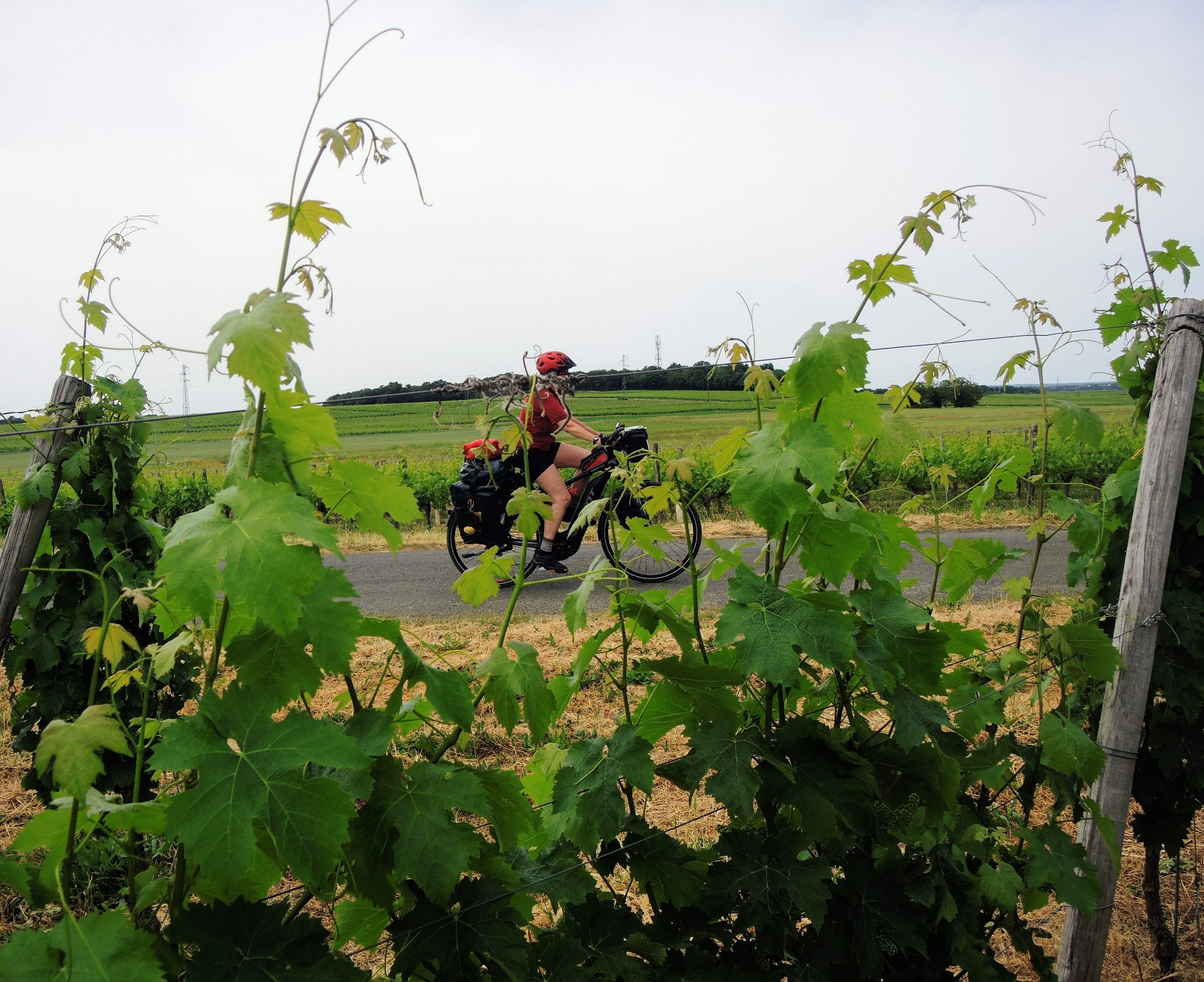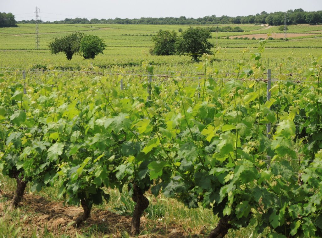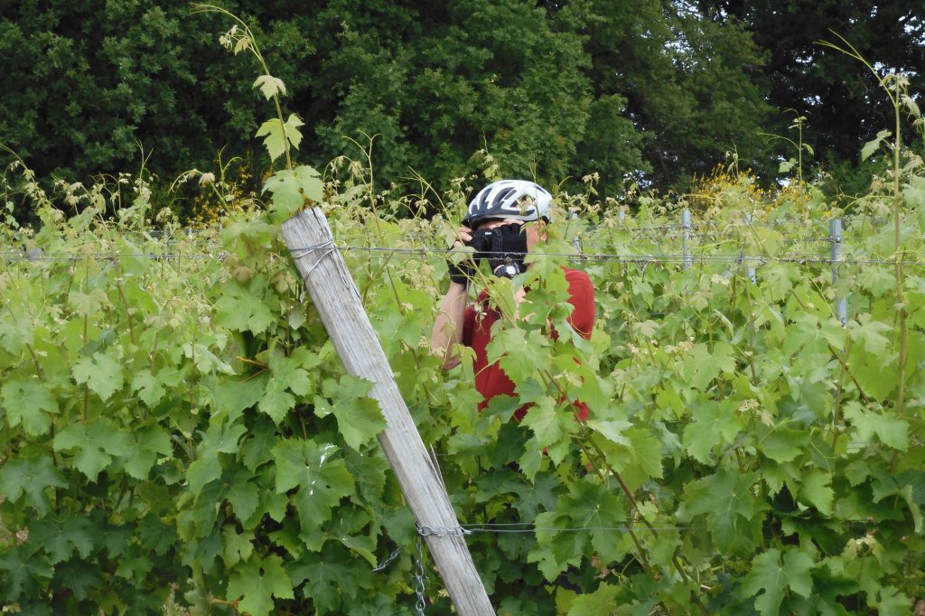 Wir fahren über die Hügel durch… …eine herrliche Kulturlandschaft. Weinstöcke bis zum Horizont.Die Weinfelder des ‚Château de Targé‘. Diesen Tropfen wollen wir uns heute Abend gönnen.