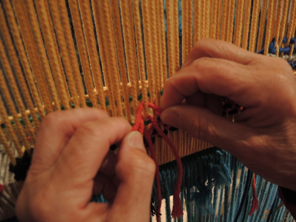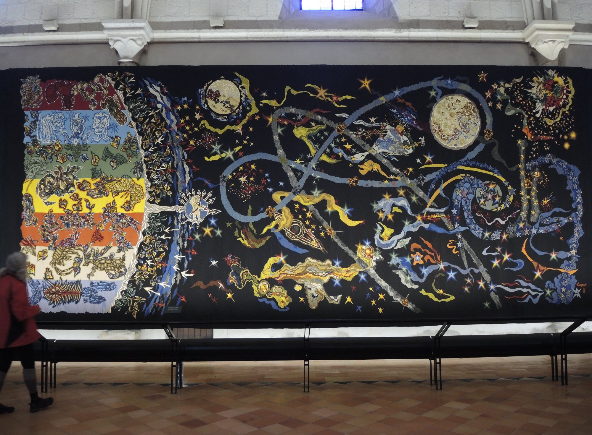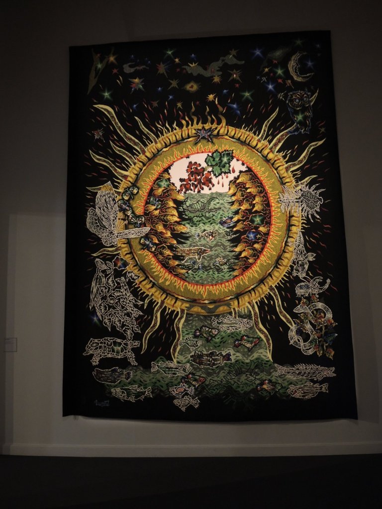 Das Museum Jean-Lurçat präsentiert wunderschöne, farbenprächtige, riesige Wandteppiche.Kerstin versucht sich auch.Und jetzt folgen die Meisterwerke des für das Museum namensgebenden Künstlers.