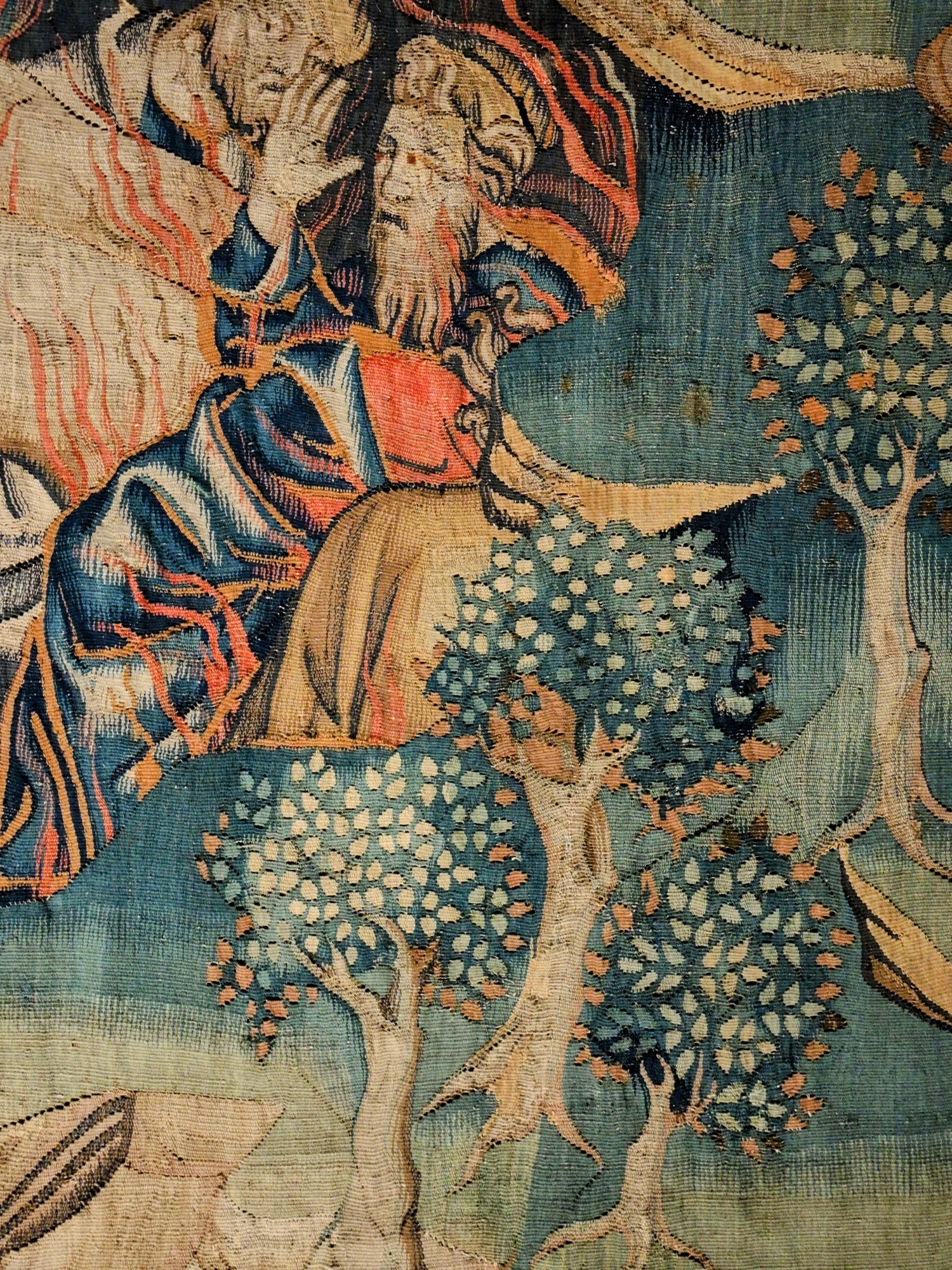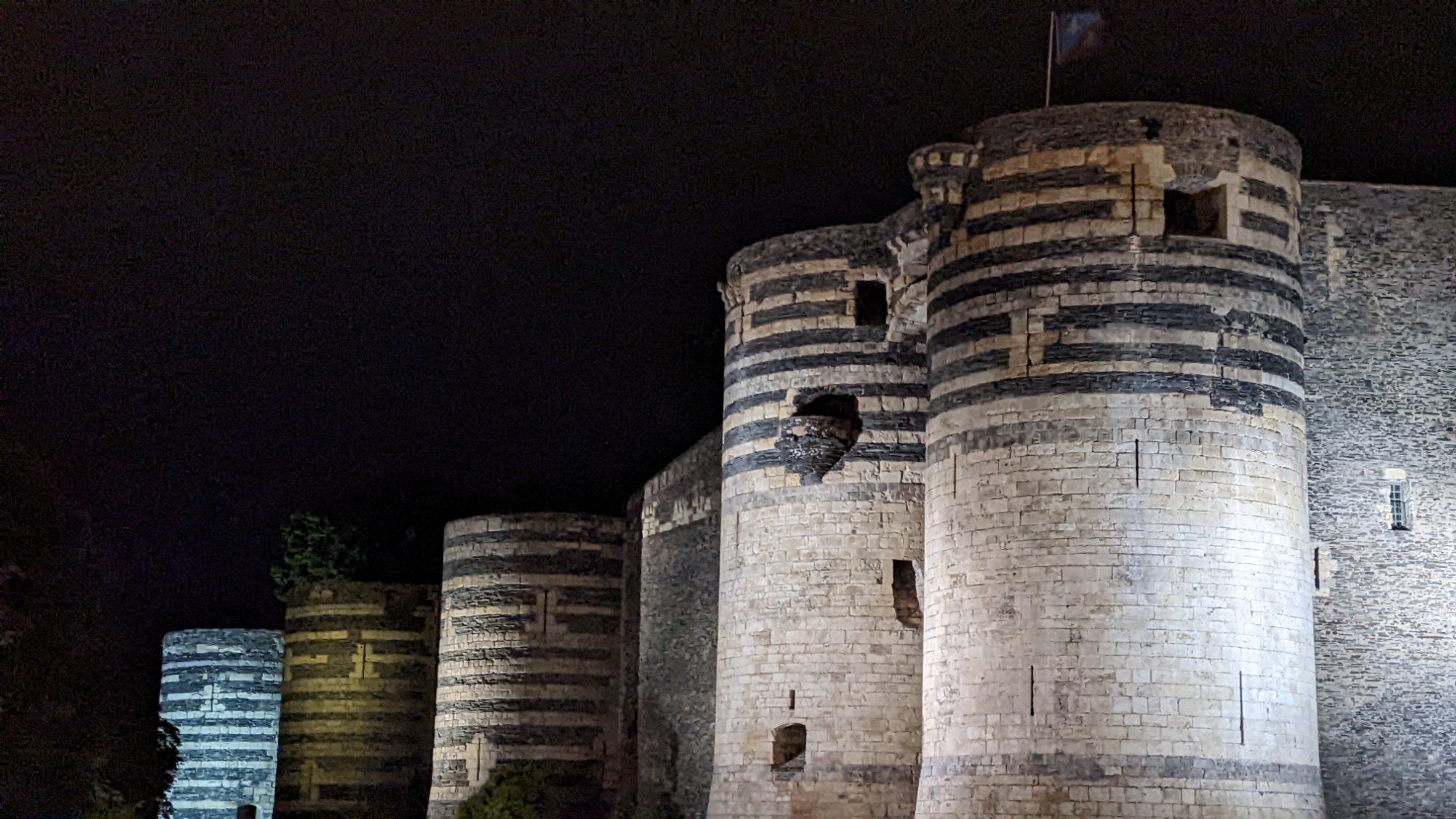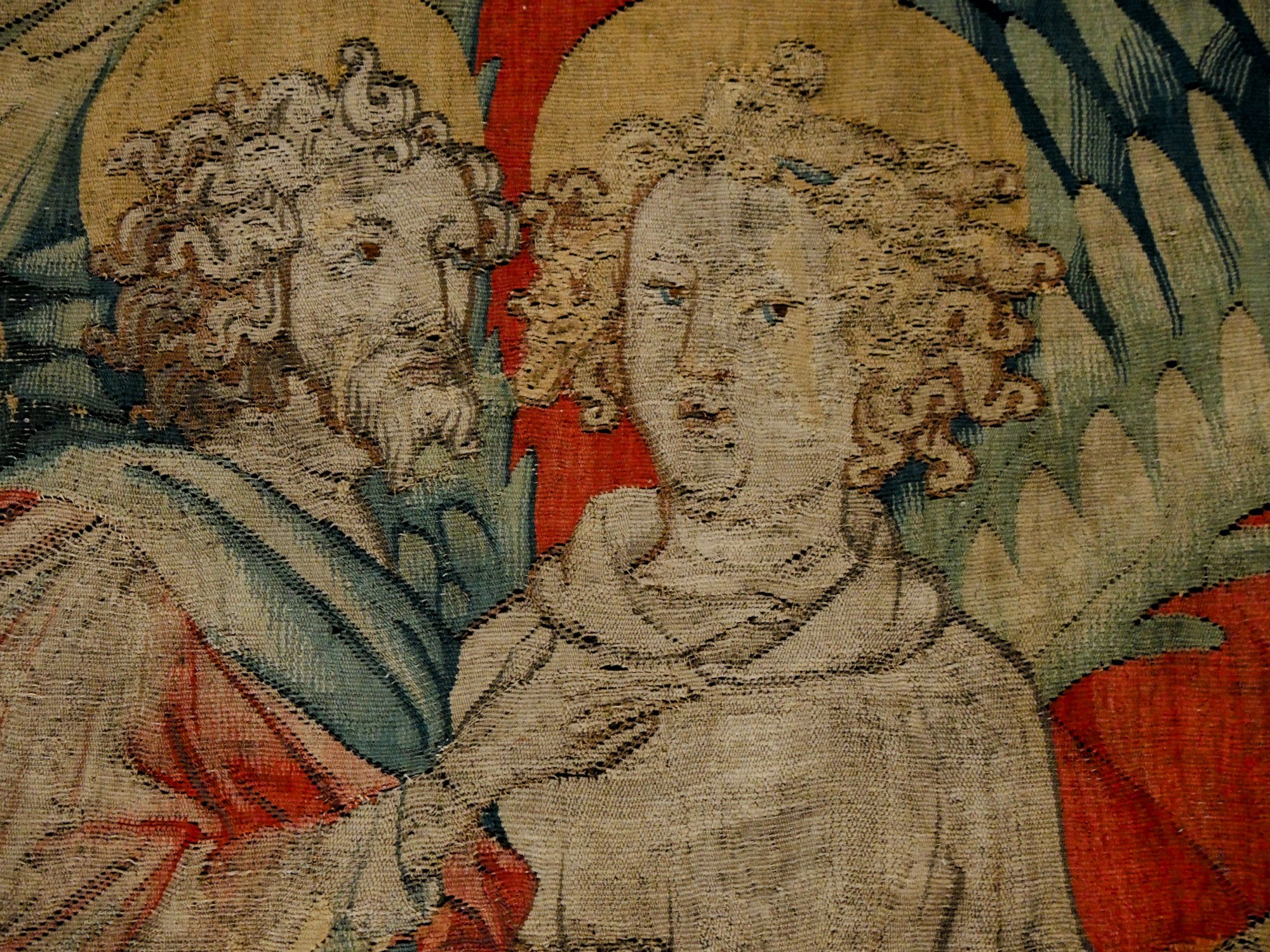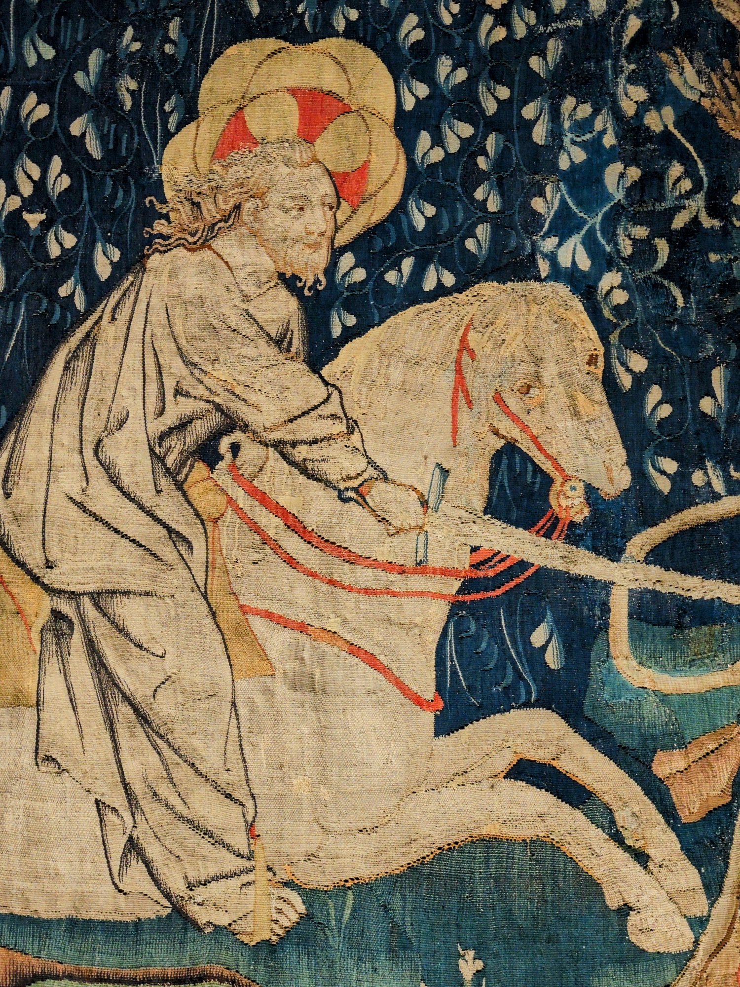 Das war schon mal imposant; der eigentliche Grund, warum wir in dieser Stadt sind, verbirgt sich hinter diesen dicken Burgmauern…….der Wandteppich der Apokalypse.Quelle: Flyer zur Besichtigung100 m lang, 6 m hoch.In der Zeit des Hundertjährigen Krieges entstanden, also 650 Jahre alt.