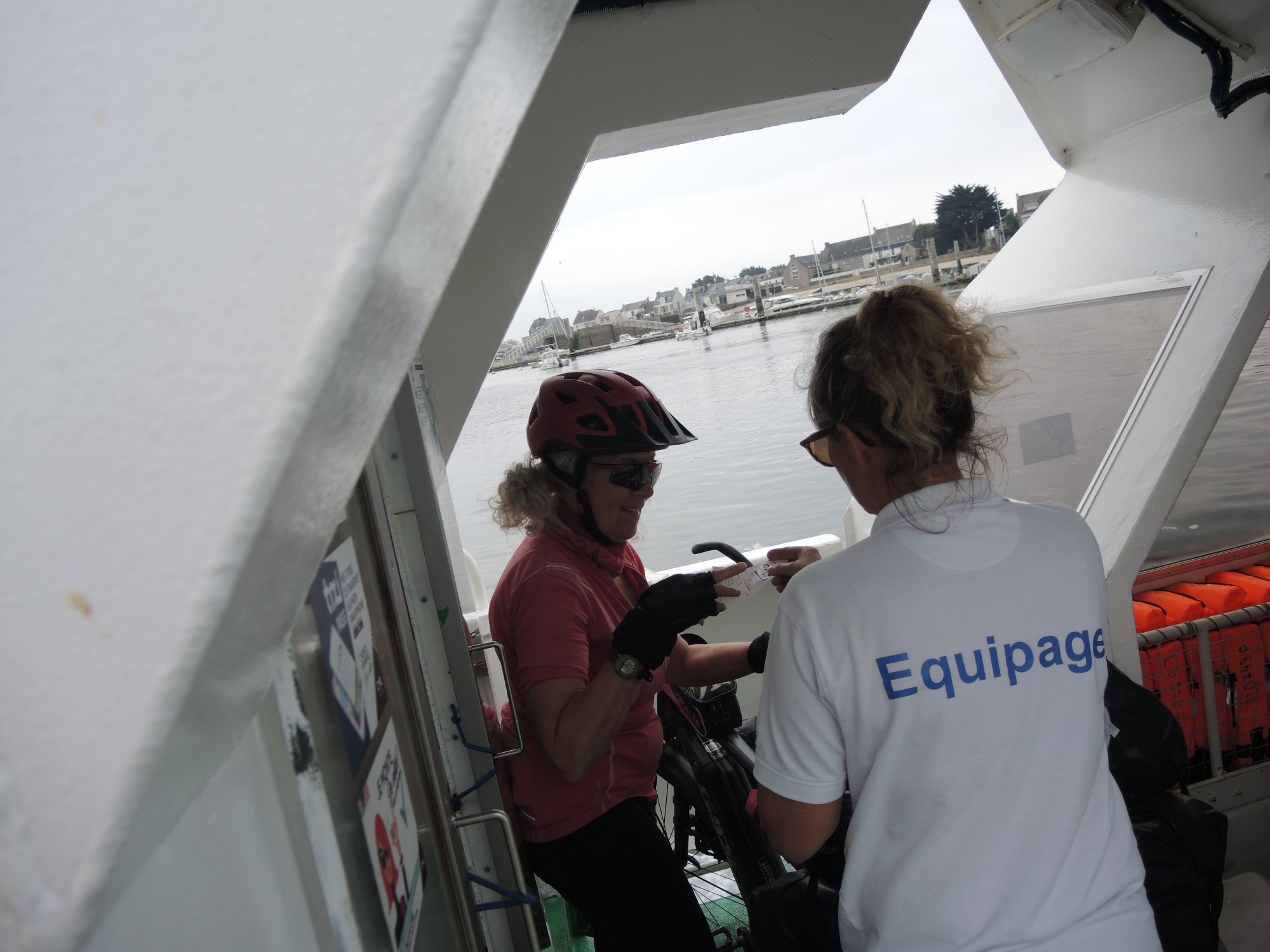 Küstenstraßen sind herrlich🤗…… besonders wenn sie entlang einer Steilküste mit freier Sicht aufs Meer verlaufen.Große Steinhaufen als Markierung für Wanderer, damit keiner bei Nebel in den Atlantik stürzt.Nach 18 km verlassen wir die Halbinsel Quiberon.Gestern schon erwähnt. Die Hinkelsteine stehen hier überall einfach so rum.Ihr wisst es schon, wir mögen diese kleinen Bäckereien.Mutter Reni und Sohn Yoran bedienen uns und das im akzentfreien Deutsch. Bemerkenswert: Die Mutter ist als Spätaussiedlerin 1957 aus Polen gekommen, hat „ihr Deutsch immer gepflegt“ und ihre Söhne dreisprachig aufwachsen lassen.Man hat uns sogar von sich aus in das Allerheiligste gebeten, die Backstube. Unsere Fahrräder waren heute Morgen schon startklar, da haben wir kurzerhand die Route umgeplant. 2 Fähren ermöglichen einen küstenahe Fahrt, so ein Tippgeber.Diese Minifähre hat uns doch wirklich mitgenommen, obwohl unsere Fahrräder mit dem vielen Gepäck nur mit Ach und Krach verladen werden konnten. Tipps für unsere spätere Fahrt in der Normandie gibts gratis dazu.Ein trauriges Bild, Schiffe ohne eine Handbreit Wasser unter dem Kiel. Ebbe.Etliche Nummern größer.Unsere beiden Gefährten hatten hier auch wesentlich mehr Platz. Mit voller Leistung geht es unserem Tagesziel entgegen.Lorient voraus.
