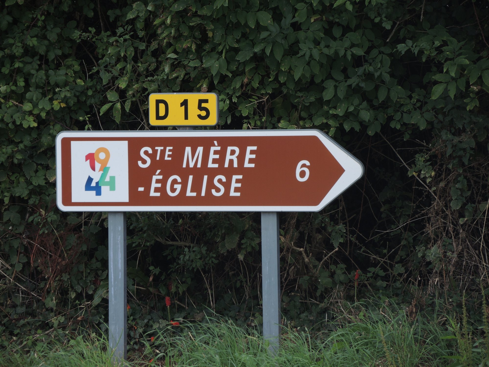 Wer den Film ‚Der längste Tag‘ gesehen hat, wird dieses Bild sofort einordnen können. Die am Kirchturm von St.Mère-Eglise aufgehängte Puppe erinnert an John Steele, der dort nach dem Absprung hängen blieb.