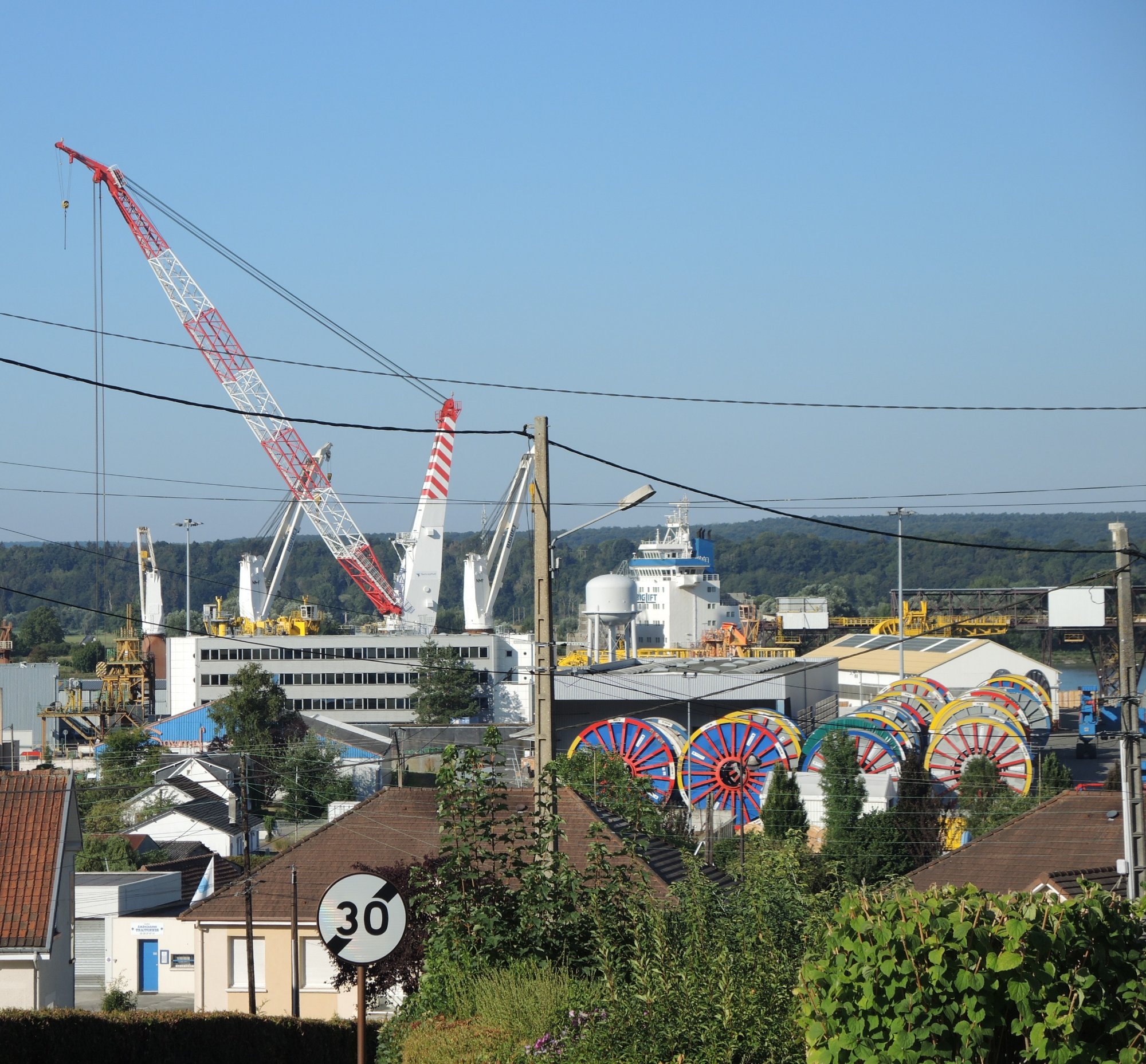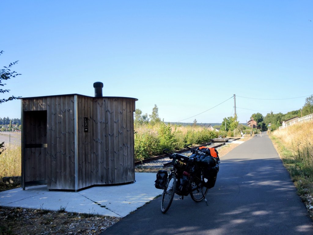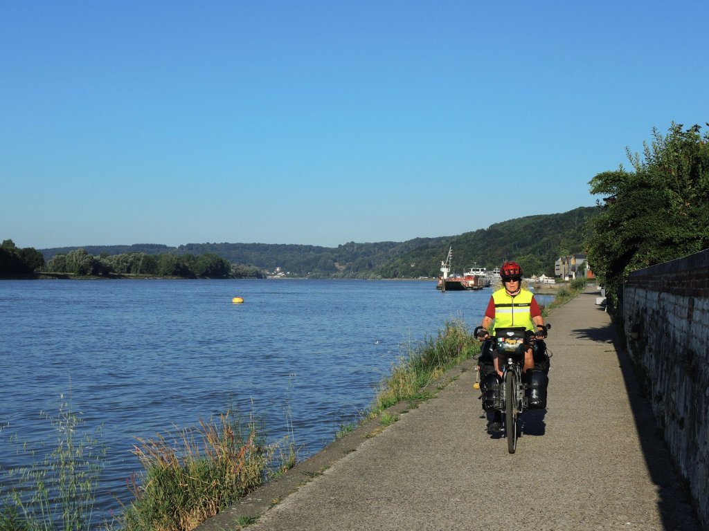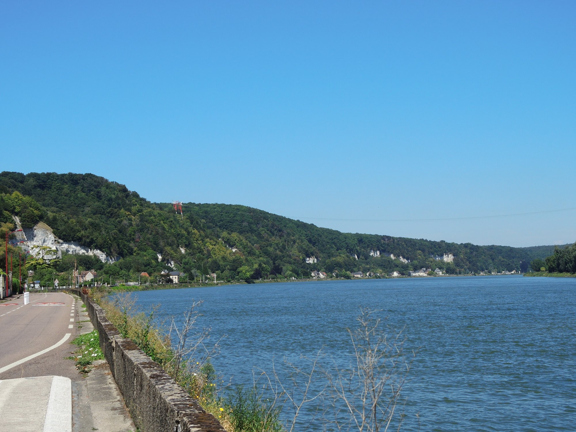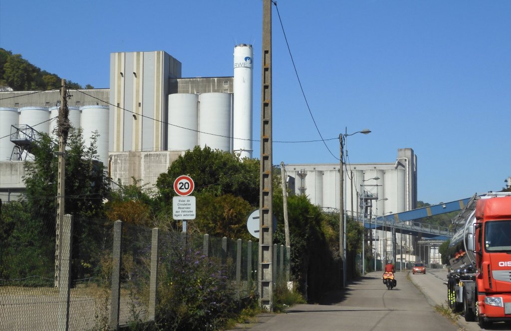 Zelt abgebaut, gefrühstückt, alles eingepackt. 08.20 Uhr, es geht los. Wir fahren der Sonne entgegen, entsprechend schwierig ist das fotografieren, Gegenlicht.Ein Bahnradweg, wie angenehm.Mit Hinweisschildern……sogar in Deutsch.Le Trait ist durch Schiffbau zu Wohlstand gekommen. Heute werden flexible Rohre für Gas-und Ölleitungen gebaut. (Mehr im Hinweisschild)Die Seine windet sich durch die Landschaft. Wir beschließen spontan, auf dem angenehmen Bahnradweg eine Schleife abzukürzen. Die gesparten 18 km investieren wir in zwei lange Pausen im Schatten.Rastplatz mit Toilette👋.Seine-Fähre Duclair.Wir sind seit Le Havre im Département Seine-Maritime. Steht am Schiff. Überfahrt kostenlos, auch für PKWs1. Pause am Fähranleger.Vertrocknete Weiden.Im Schatten der Pappeln ist es auch für die Rinder angenehmer Nicht verwechseln mit der „Jersey-Kuh“. Auch die Mutterkühe haben es sich unter Bäumen gemütlich gemacht. Fähre La Bouilie2. Pause mit Aussicht.Die sterblichen Überreste Napoleons wurde 1840 von St. Helena zurückgeholt, in Cherbourg auf ein Binnenschiff umgeladen, wegen Eisgangs bei -10° musste es hier stoppen, ……deswegen das Denkmal. Auf den Banderolen die großen Schlachten, wie Jena und Austerlitz. Völkerschlacht zu Leipzig und Waterloo fehlen!20 km fahren wir an Hafenanlagen Rouen entgegen..Der Hafen befindet sich bis zu 80 Kilometer von der Flussmündung entfernt. Gleichwohl ist er zugleich Fluss- und Seehafen. Die maximale Schiffslänge beträgt 260 Meter bei maximal etwa 150.000 Tonnen.Der größte Getreidehafen Europas.Blick aus unserem Hotelfenster. Comfort Hotel Alba, Rouen. GoogleMaps