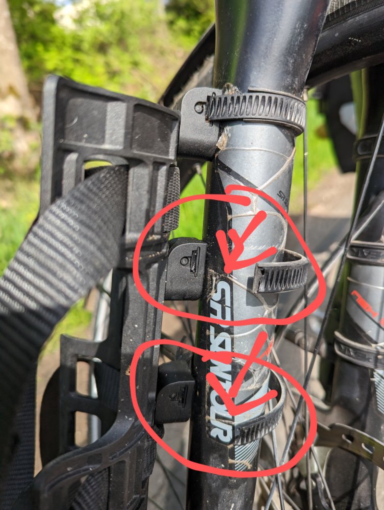 Bei der Gelegenheit sind wir noch einem klappernden Geräusch an Kerstins Ebike nachgegangen. Die Vernietung der Halterung des vorderenen Schutzbleches ist der Übeltäter. Also, Panzerband drüber.