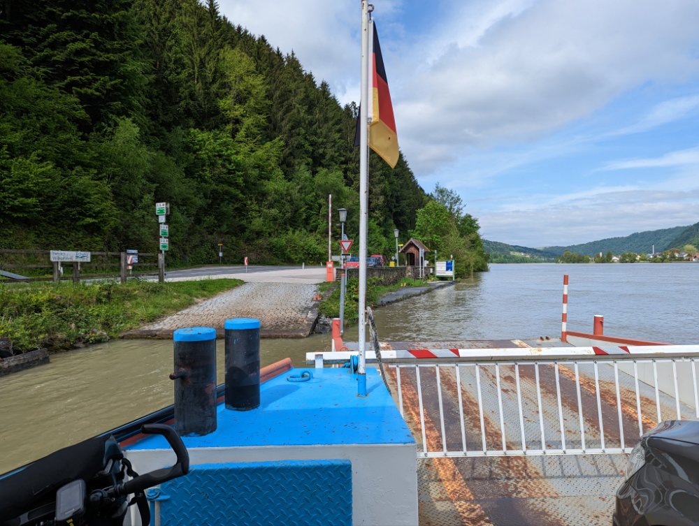Die kleine Autofähre ‚Hafnerzell‘ legt gleich in Österreich an.