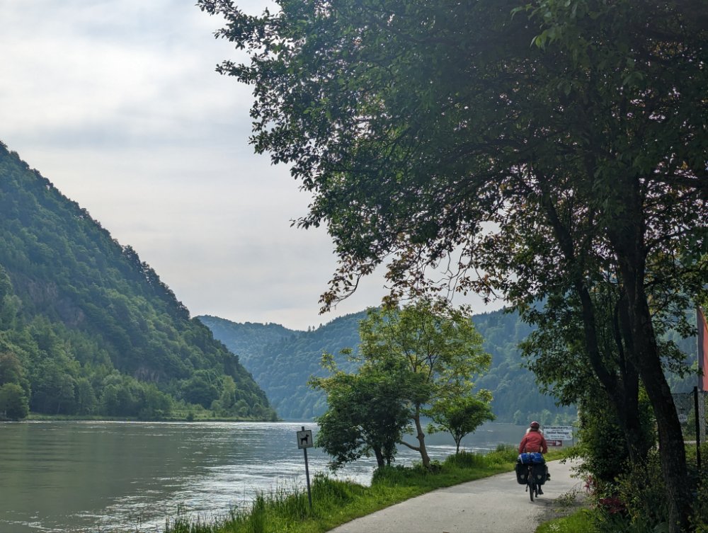 Blick zurück. Die wunderschöne, tiefe Schlucht der Donau lassen wir nach 25 km hinter uns.