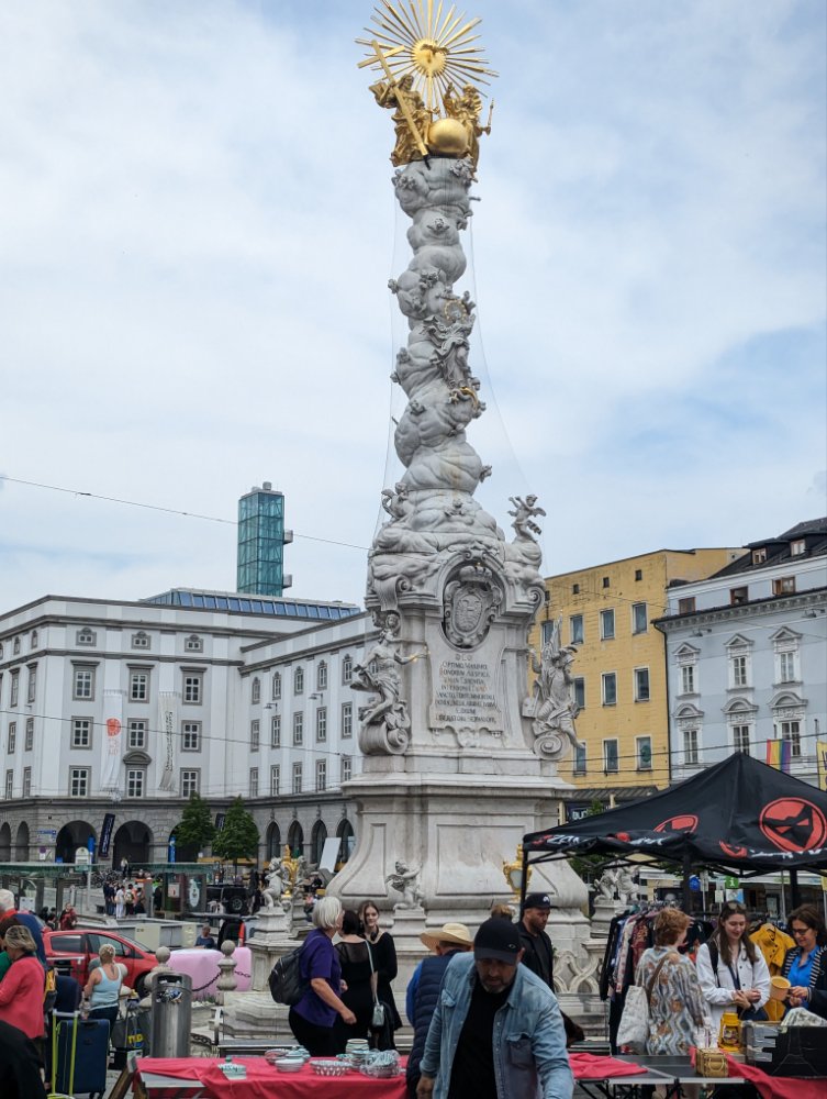 Die Dreifaltigkeitssäule, eine Pestsäule aus dem 18. Jahrhundert, befindet sich in der Mitte des Linzer Hauptplatzes