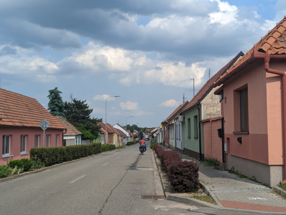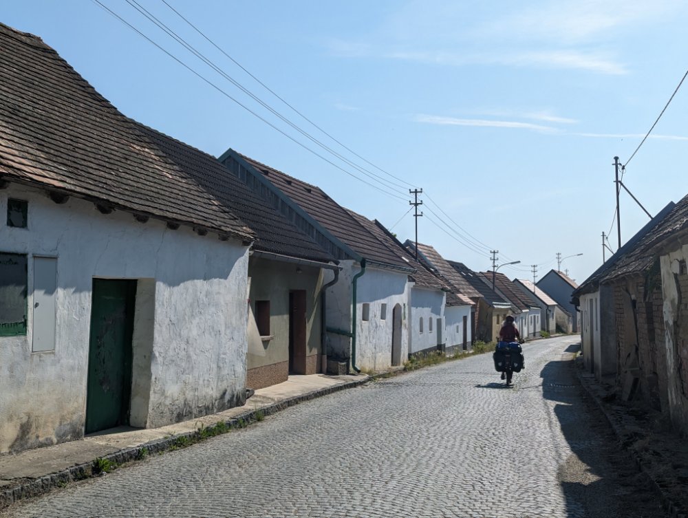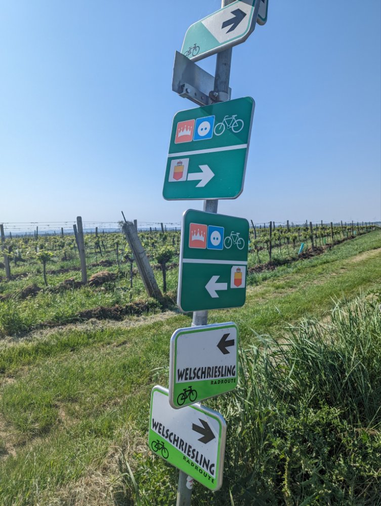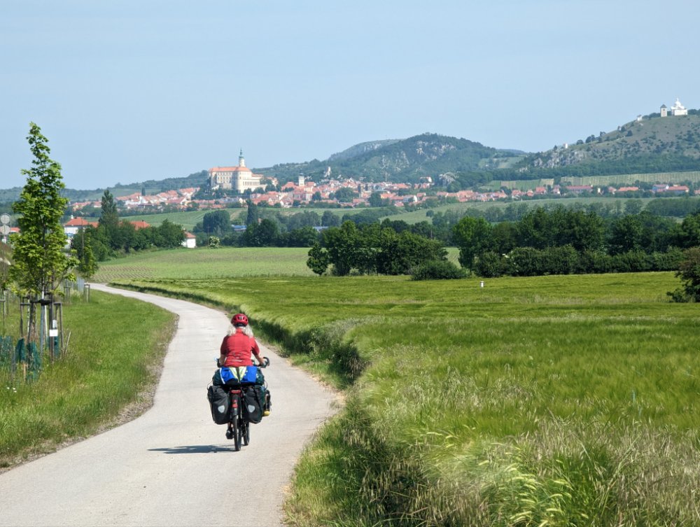 Heute das Weinviertels auch mit Weinfeldern, hier 10 Minuten nach dem Start Die regionalen Radwege werden nach Rebsorten benannt.Dahinten liegt Tschechien.Unser erstes Ziel in CZ, Mikulov.Diese Abfertigungsanlagen werden nicht mehr benötigt. Schengen lässt grüßen.