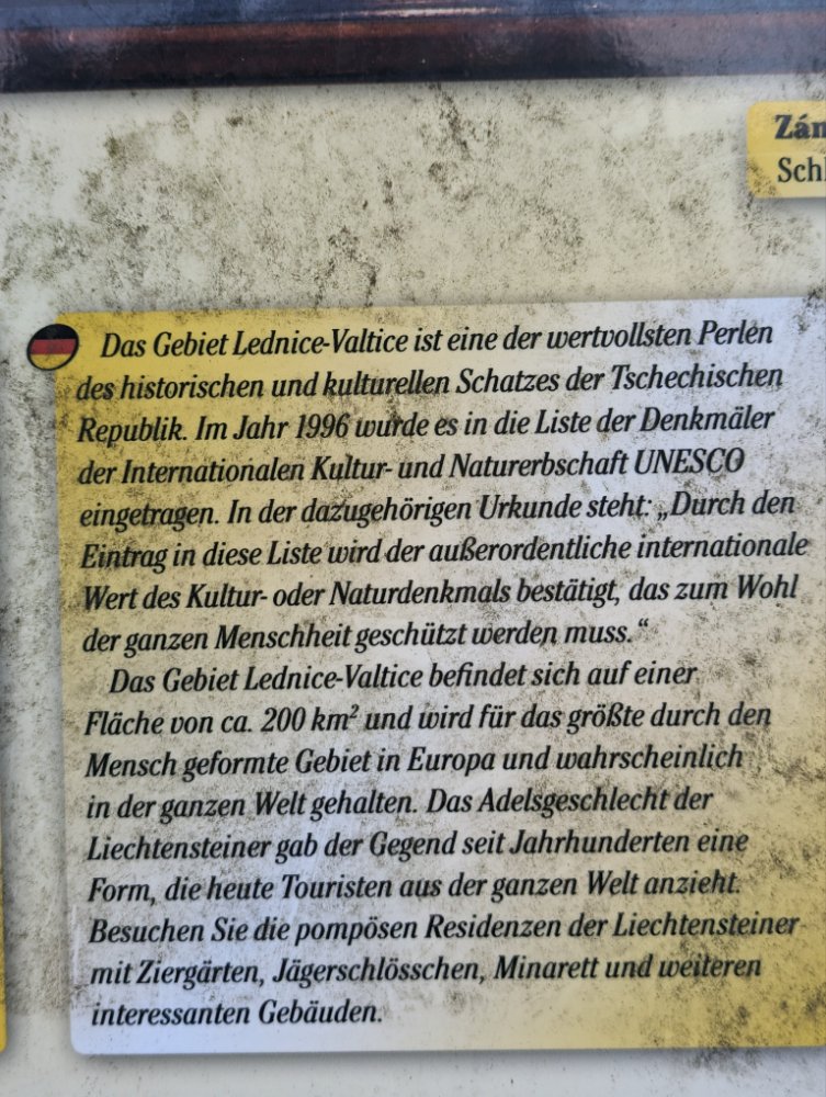 Übrigens: Alle Schlösser, Kirchen und Parks des heutige Tages wurden von den Liechtensteinern erbaut bzw. angelegt. Da der Staat sie für die Enteignung nach 45 nicht entschädigt hat, sind sie sauer und haben das moderne Tschechien nicht anerkannt und sich in ihr Fürstentum verkrochen.