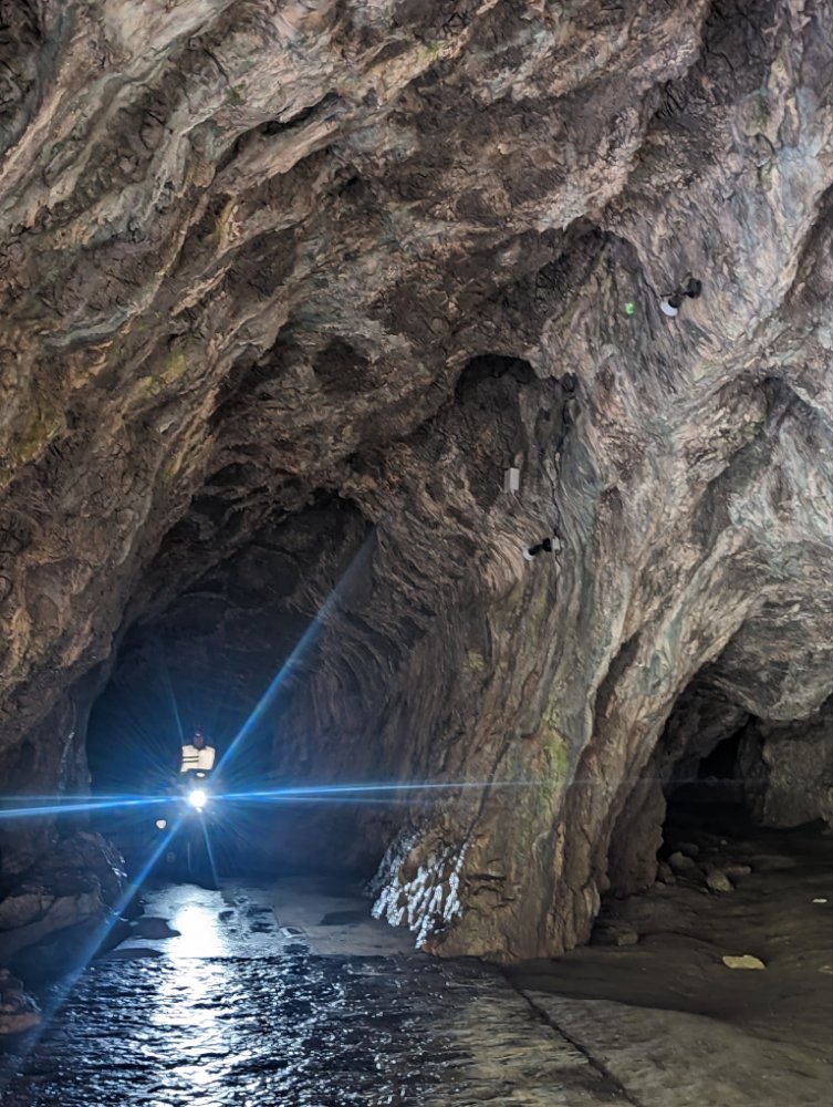 Einsam fahren wir kilometerweit durch die enge Schlucht. Plötzlich eine Seilbahn, die ……Besucher zum Eingang einer Höhle herunterbefördert.