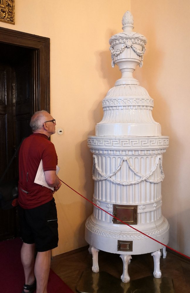 Auch in das Staatsschloss von Telč dürfen wir rein. Uns begeistern die wertvollen klassizistischen Öfen. Im Arbeitszimmer des Grafen…