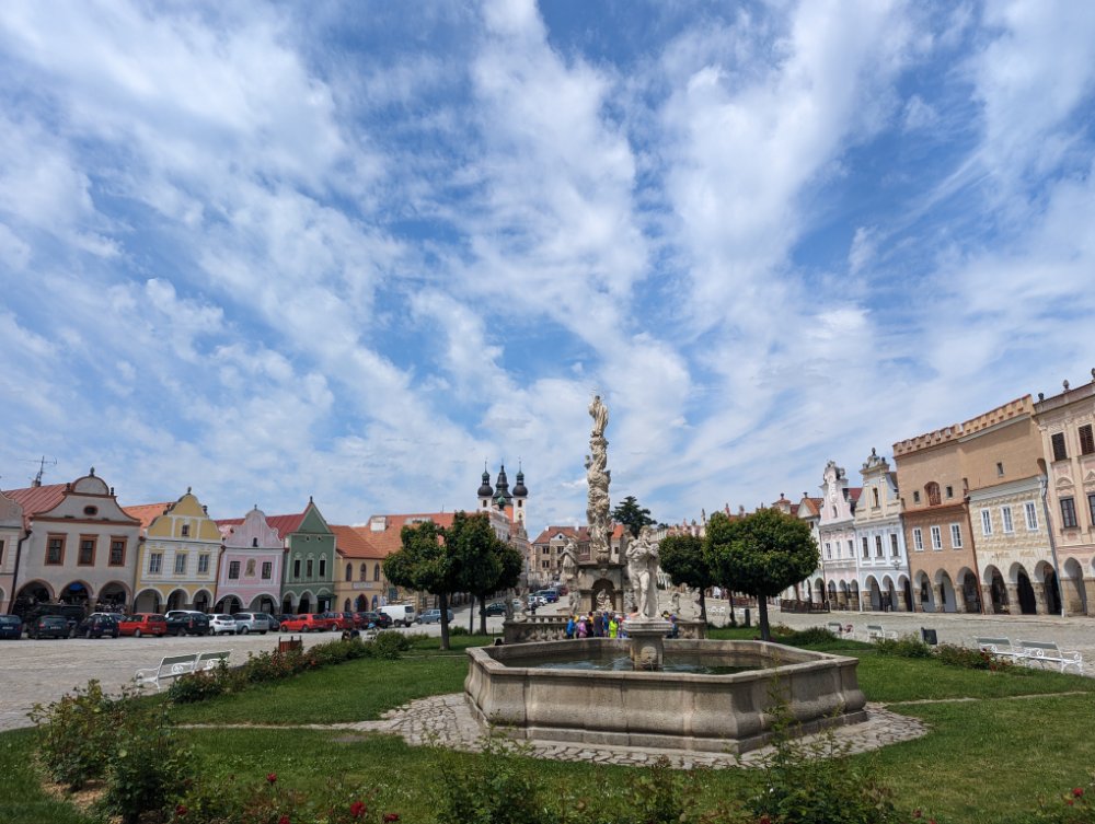 Mit Blick auf das Rathaus denken wir, gut, dass wir Telč in unsere Route aufgenommen hatten.