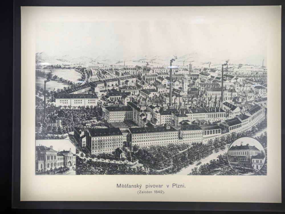 1839 gegründet, 1842 erstmals gebraut von dem bayerische Braumeister Josef Groll…Goldene Farbe. weißer Schaum. 80% aller hellen Biere werden heute weltweit nach dieser Art gebraut. Heute in japanischem Besitz. 60.000 Flaschen eine Anlage insges. 1 Mio l = 2 Mio Flaschen. 5 Wochen bis zum fertigen Bier. Gärkeller > Lagerkeller