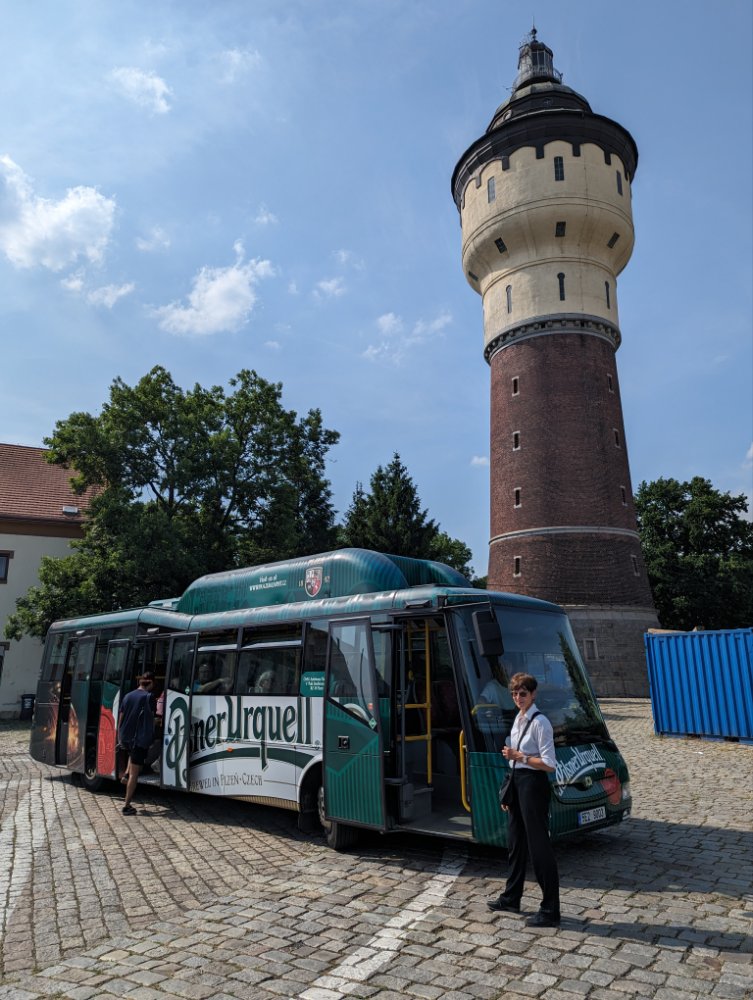 Auf dem Gelände bewegen wir uns mit dem ‚Pilsener Urquell – Bus‘