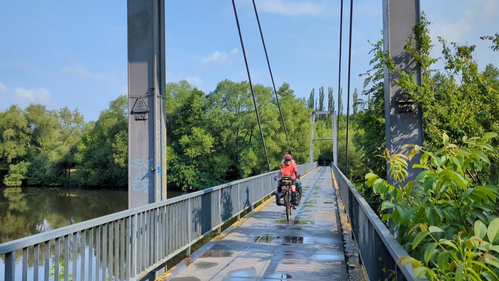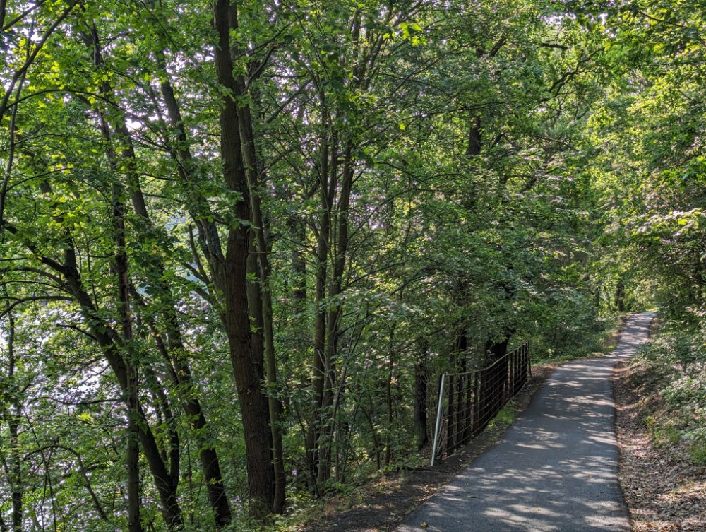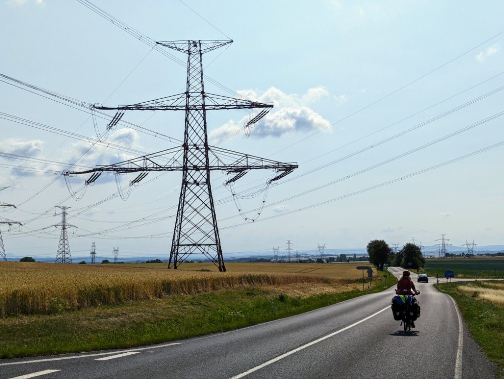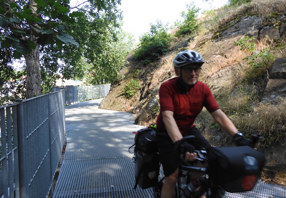 Mit einem guten Frühstück starten wir in den Samstag.In der Nähe des Rathauses hat auch die ……Polzei ihr Quartier. Kurzer Besuch am SchlossDie Zeiger gehen auf 09.00 Uhr, jetzt aber los! An der Eger entlang.Der Radweg ist gut ausgebaut. Spektakulär ist der Weg an die Felsen montiert.Ab Kadaň müssen wir uns trennen. Es geht wieder über die Berge.Oben auf dem Bergrücken gibt’s dann Landschaftsgefühl…Nach links, Norden, Richtung Erzgebirge. Nach rechts.Stausee Nechranice mit dem Braunkohle-Kraftwerk Tušimice.Die Staumauer ist mit einer Länge von 3.280 m der längste aufgeschüttete Damm in Mitteleuropa.Pause, heute im Stehen zur kurzen Energiezufuhr. Wir wollen zeitig am Zielort eintreffen.