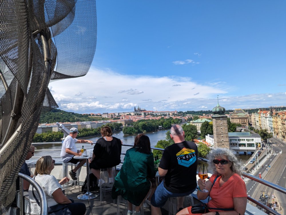auf der Terrasse des ‚Tanzenden Hauses‘.