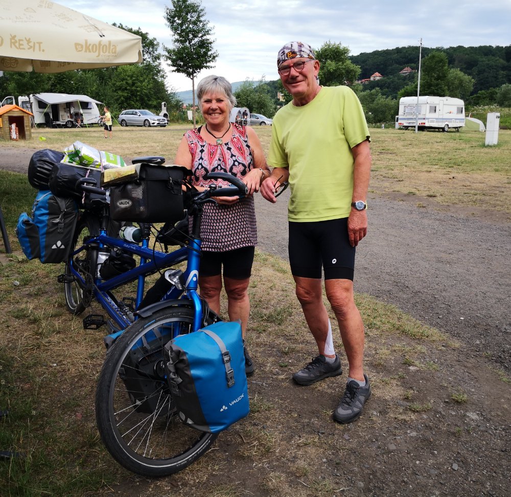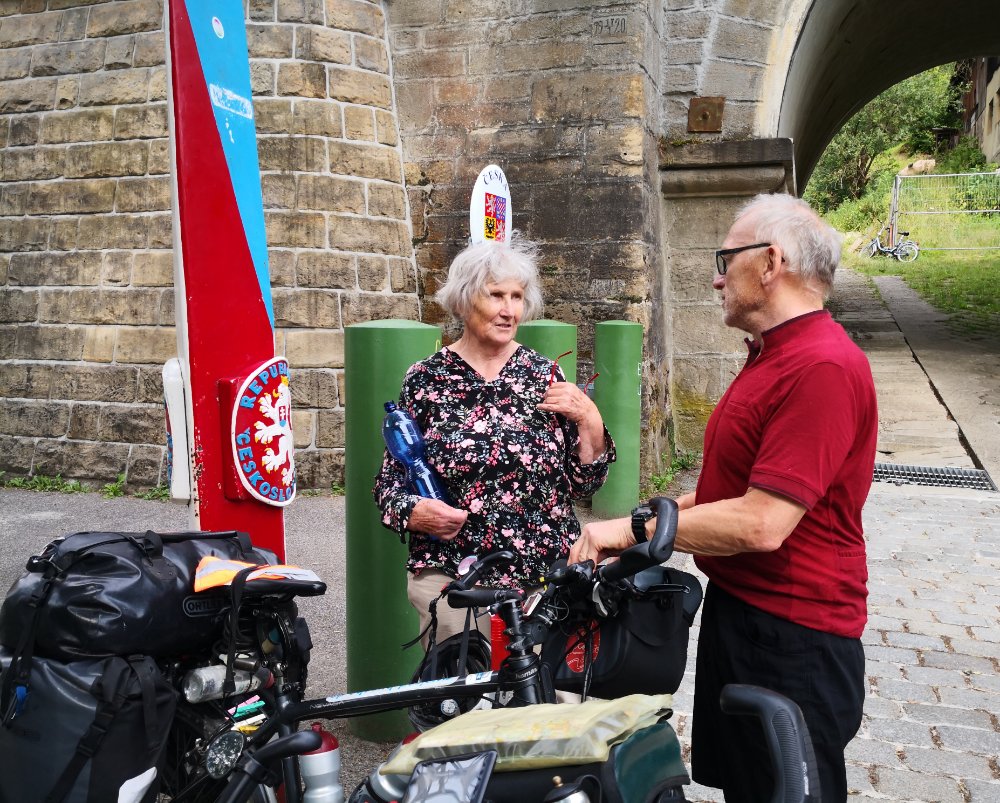 Holländer sind auch überall anzutreffen und hart im Nehmen. Trotz einer Wadenverletzung, mit 16 Stichen genäht, fahren die Beiden mit ihrem Tandem weiter bis Prag.