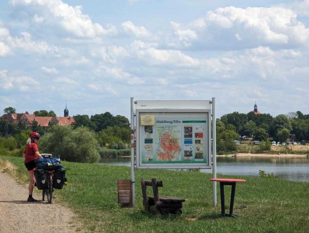 14/07/202314/07/2023 SJ70 Mühlberg Elberadweg, D: Meißen >Riesa >Mühlberg☀️⛅ 30° Schloss Hirschstein Nünchritz, bedeutender Chemiestandort seit 1900. Riesa Mühlberg Erinnerndes Gedenken 🏍️ 28.07.2002 Veronika & Manfred Danke Marina für das Auffrischen der Erinnerungen der letzten 21 Jahre und den schönen Abend. Wasserwanderraststation, Mühlberg