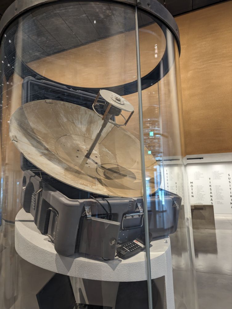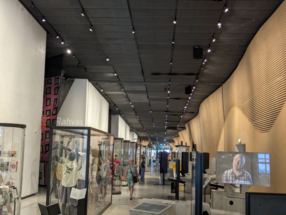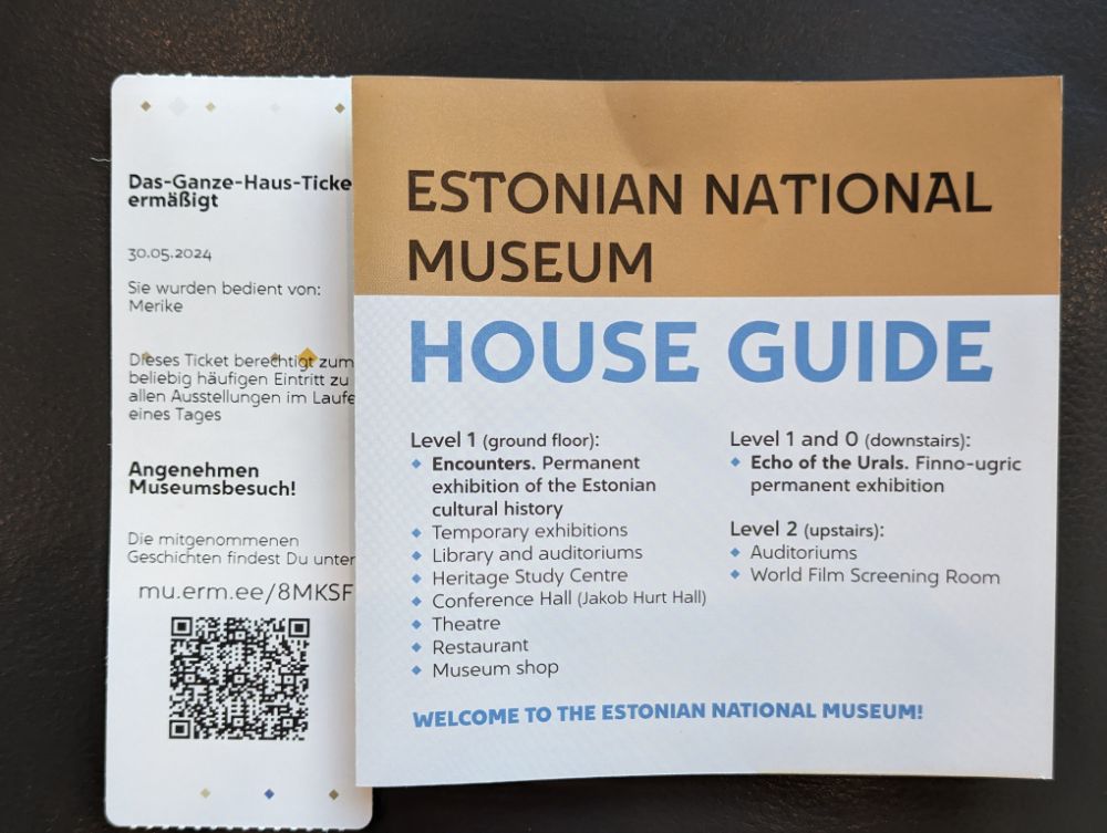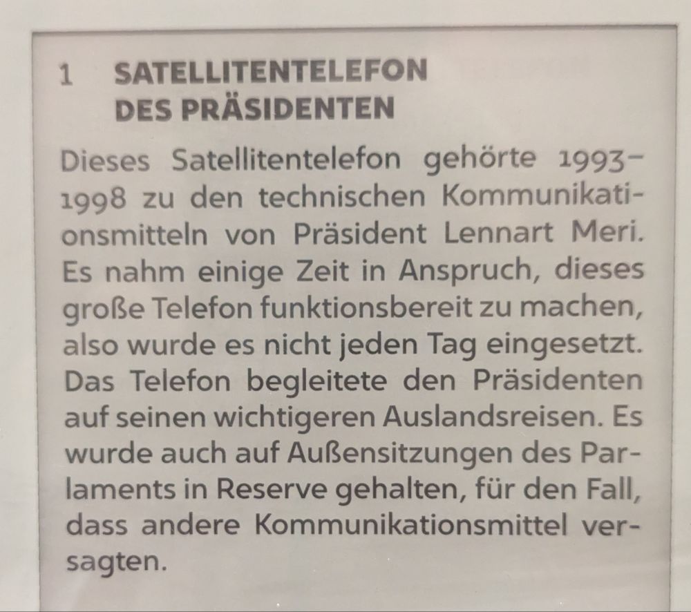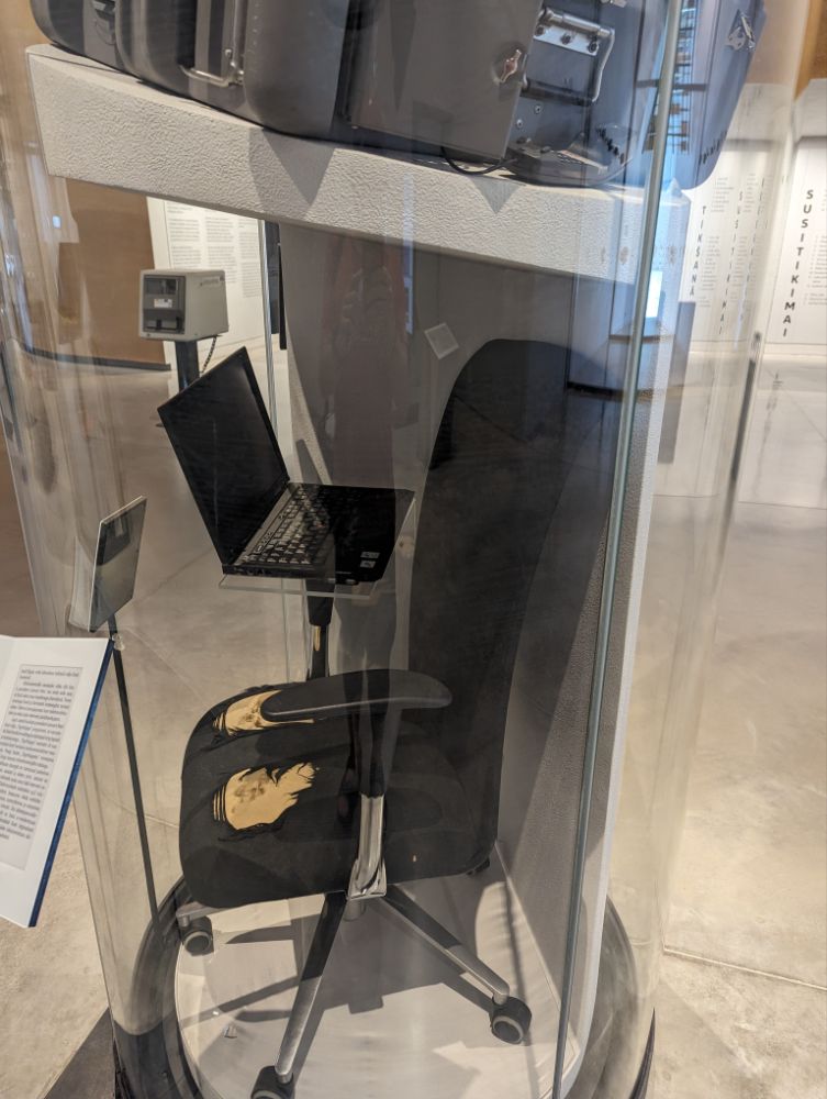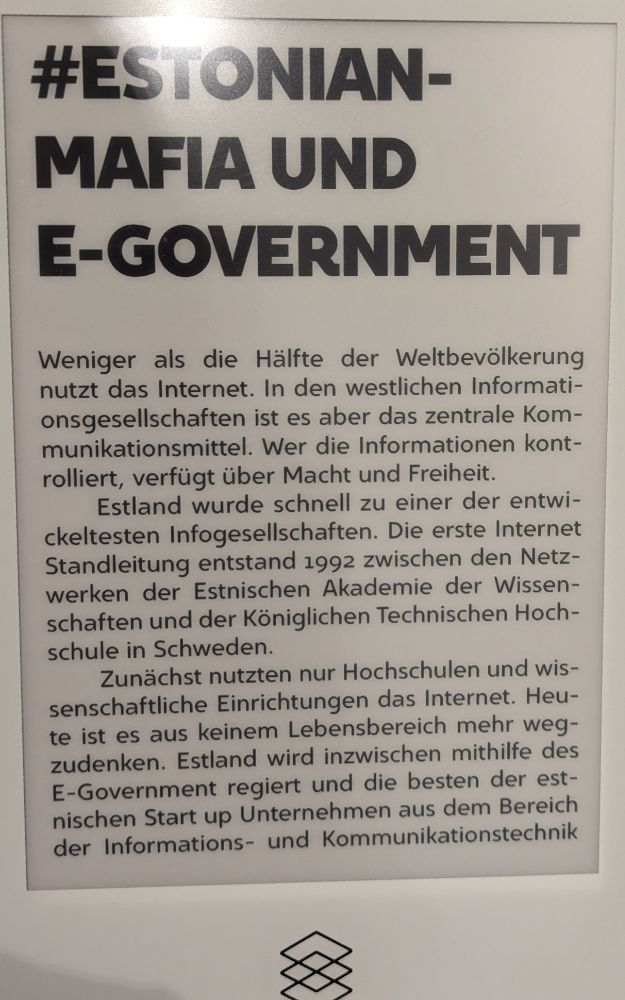 Mein Fahrrad darf mit hinein Ticket an die Infotafel halten, schon ändert sich die Schrift auf Deutsch, noch einmal dranhalten und die Infos werden einem zur Mitnahme elektronisch bereitgestellt.Auf diesem Stuhl wurde Skype entwickelt.23.8.1989. Am 50. Jahrestag des Hitler – Stalin – Paktes bilden 2 Mio. Balten eine Menschenkette von Vilnius bis Tallin um für ihre erneute Unabhängigkeit zu demonstrieren. 600 km. Alles funktioniert, nicht ein Gerät ist ausgefallen. Ethnische Bevölkerung, von hier über Karelien bis zu den Samen. Alles sehr großzügig. Auch das Café.