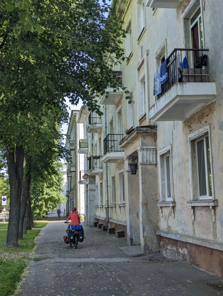 Das war selbst für uns neu. Die Fahrräder haben ein extra Zimmer vom..Hotelchef Vladimir. Und für uns jede Menge Unterstützung und viele Infos. Das Hotel ist übrigens eins von zwei Häusern, die den 2. Weltkrieg überstanden haben. Diesmal waren es die Rote Armee, die Narva platt gemacht hat, um die deutsche Wehrmacht zu vertreiben.