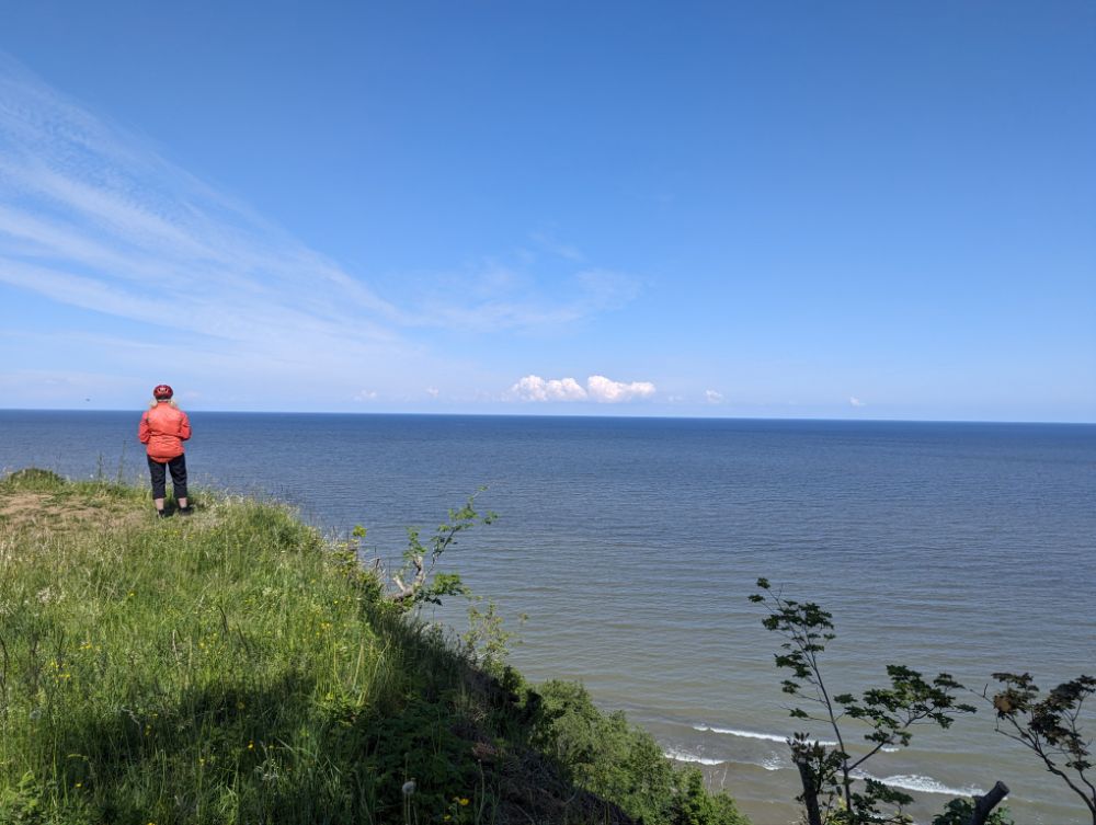 EV10=Eiserner Vorhang (Barentsee – Schwarzes Meer)Das Landschaftsschutzgebiet Ontika, das den höchsten und spektakulärsten Teil des Baltischen Klints und des nordestnischen Ufers bildet. Eine bis zu 23 km lange, ununterbrochene Klippe erhebt sich hier bis zu 56 Meter über dem Meeresspiegel.Ein Wasserfall.Was für ein Farbenspiel der verschiedenen Gesteinsschichten (von oben Kalkstein, glaukonischer Sandstein, Ölschiefer, Phosphorit, Sandstein, Schluckstein) Das Wasser fließt derzeit etwas verhalten.Haben wir in Estland öfter gesehen: schöne Lupinenwiesen, selten so bunt.Immer mal wieder Gutshöfe wie hier Saka mois ist eines der wenigen vollständig restaurierten Herrenhäuser in Estland. Das Herrenhaus bietet luxuriöse Unterkünfte im Herrenhaus sowie ein Hotel mit 29 Zimmern. …oder dieses hier, Ontika, von Mitte des 17. Jh. wird seit 1991 als Schulungs- und Erholungszentrum Ontika genutzt.Im Mittelalter war das Aa Manor (auf Deutsch: Haakhof ) ein Ordensgut zz. ein Pflegeheim. Berge? Nein Abraumhalden. Bergbau. Ölschiefer (wie gesehen) Das Festungshaus von Purtse