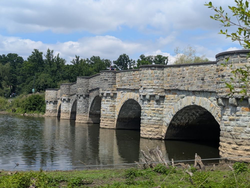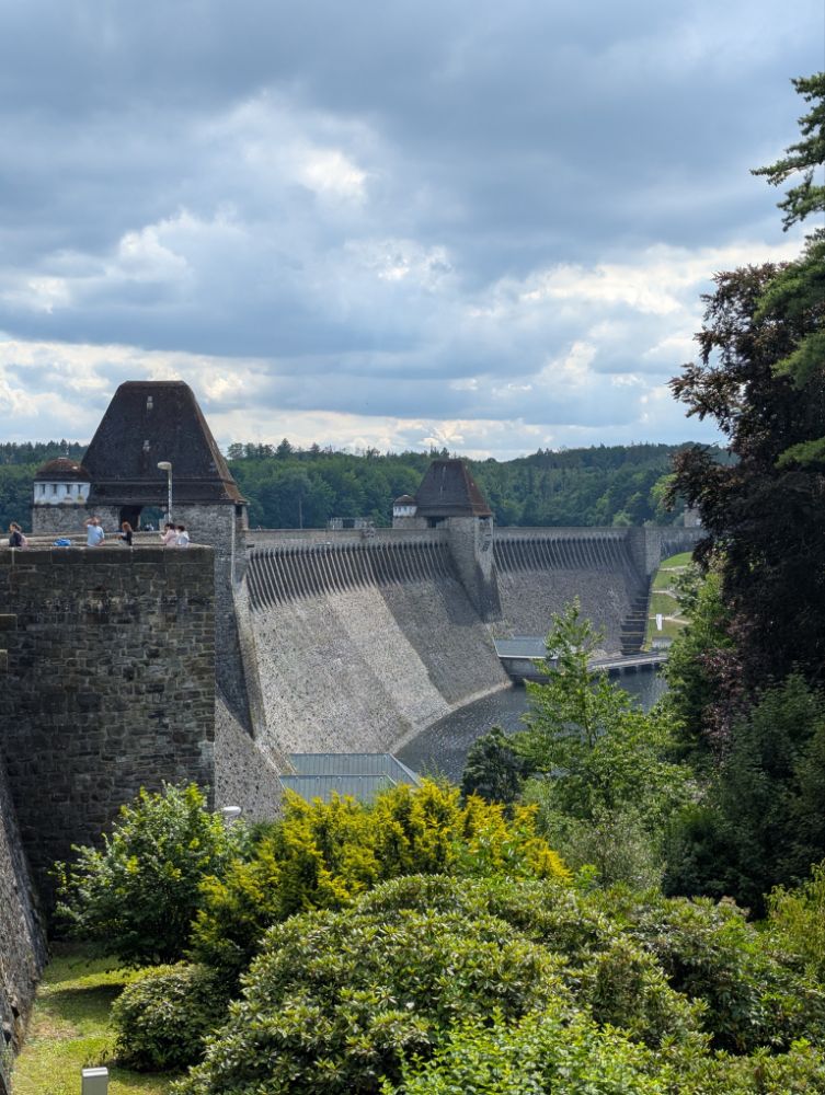 Fünf gewölbte Bögen erstrecken sich über den See: Hilt als eine der schönsten Bauwerke ihrer Art. Ihre Pfeiler erinnern an Kirchenkanzeln. Wunderschön: der Blick auf die Möhneaue!