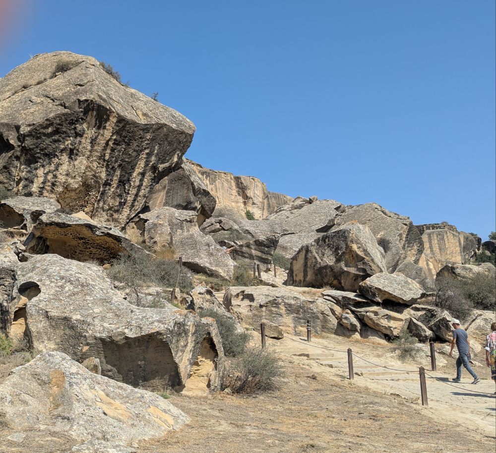 Wir lassen Baku hinter uns und besuchen die jahrhundertealten Felsmalereien von Gobustan. In diesem gleichnamigen Nationalpark können wir zahlreiche Felsmalereien, die mehr als 4.000 Jahre alt sind, bestaunen.