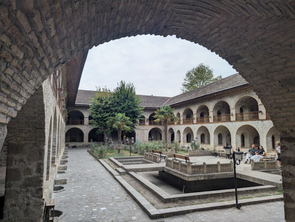 In Sheki finden wir Karawansereien und Moscheen einträchtig neben christlich-orthodoxen Kirchen. Im Palast des Shaki Khan beeindrucken farbige Fenster und schöne Decken, die den Reichtum der persischen Herrscher zeigen. (djoser)