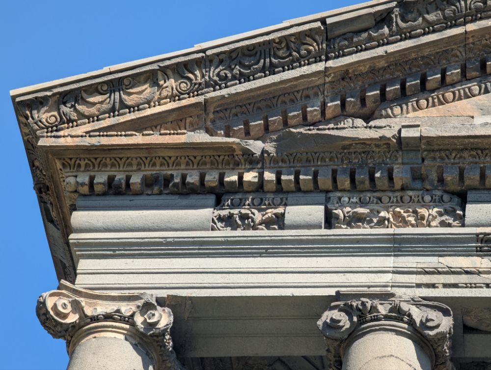 Der Tempel von Garni ist die einzige erhaltene heidnische Tempelanlage Armeniens und ein beeindruckendes Denkmal hellenistischer Architektur, gewidmet dem Sonnengott Mihr. Erbaut im 1. Jahrhundert n. Chr. auf einem Plateau über dem Azat-Fluss, ist er ein Peripteraltempel mit 24 ionischen Säulen und einem Basaltbau. Nach einem Erdbeben im 17. Jahrhundert wurde er originalgetreu wiederaufgebaut und beherbergt heute in der Nähe eine antike Kirche und ein römisches Badehaus.  (KI-generiert)