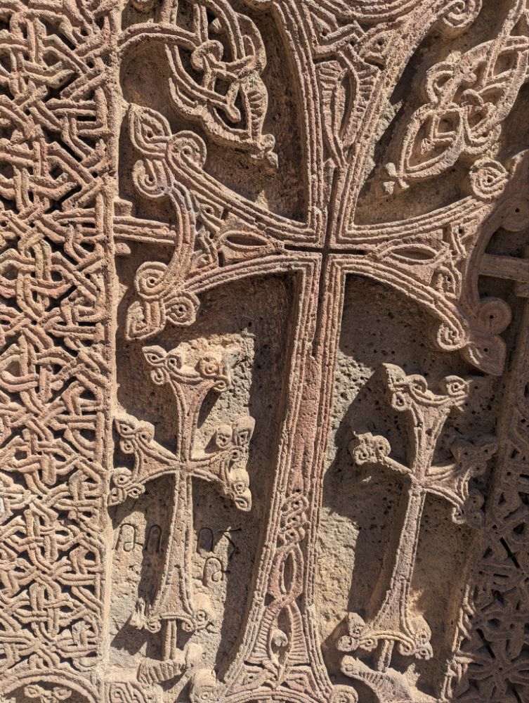 Die Chatschkare sind reich verzierte armenische Kreuzsteine, die als Symbole für Erlösung und Hoffnung stehen. Ihre Tradition geht auf das 5. Jahrhundert zurück. Sie dienen als Denkmäler, Grabsteine oder Gedenksteine und sind für ihre filigrane Handwerkskunst bekannt, bei der jedes Stück ein Unikat ist.