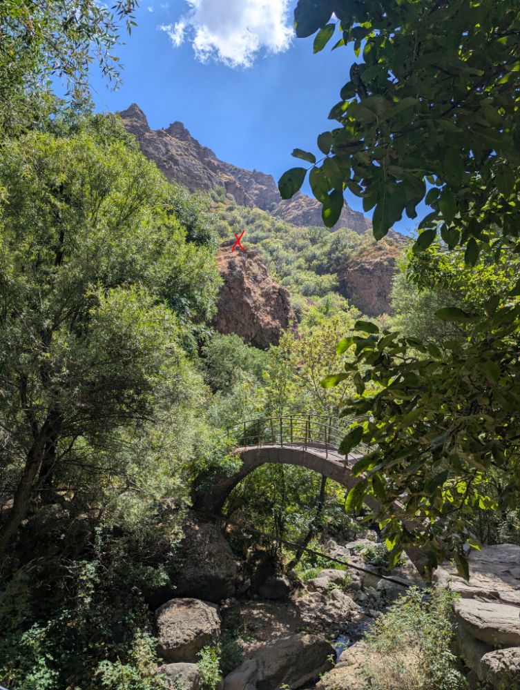 Brücke 12. Jhdt., polierter Tuff (nicht Basalt). Auf der Brücke hat Kerstin einen unerwarteten ‚Angriff‘ zu überstehen…