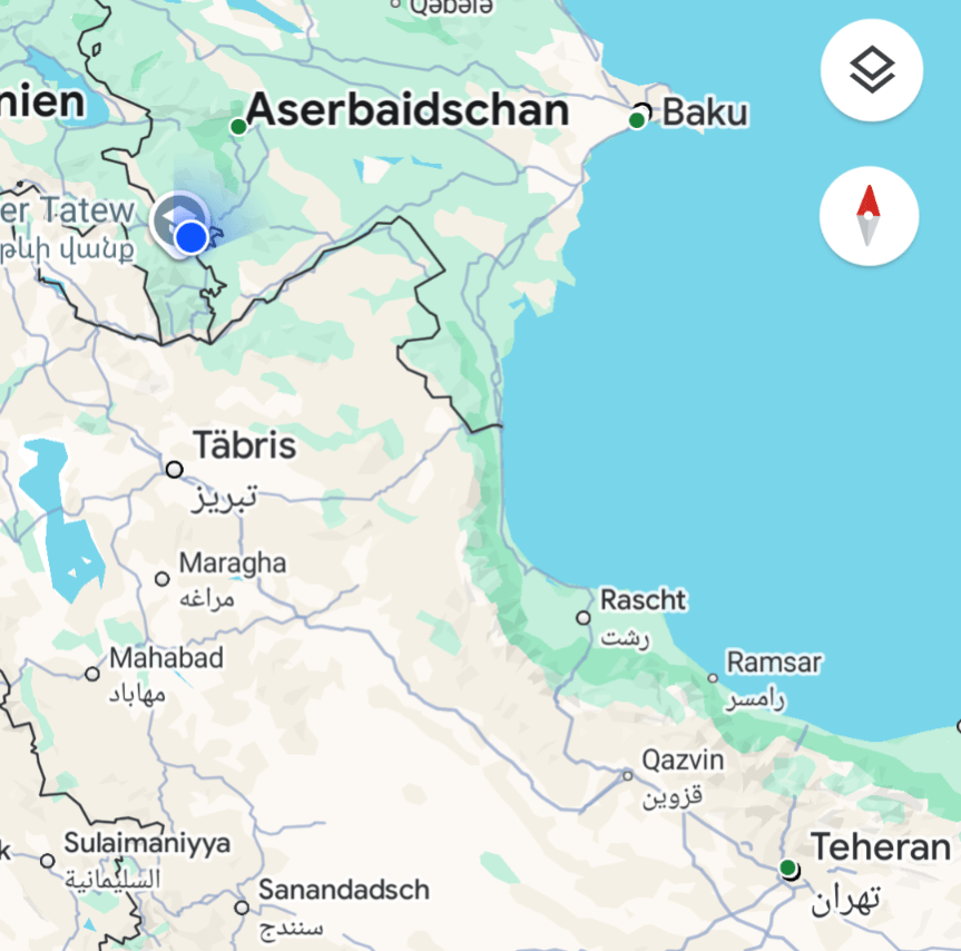 53 km bis zur  iranischen Grenze, 145 km bis Täbris und 600 bis Teheran (Luftlinie)