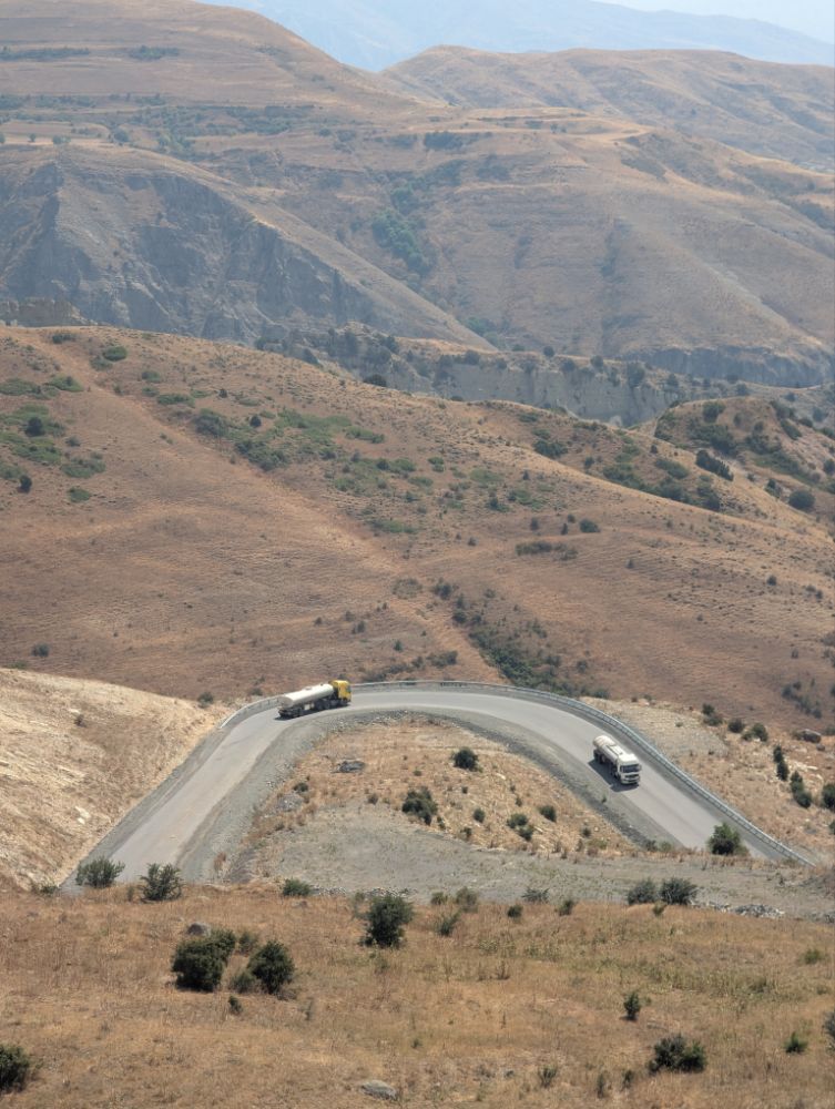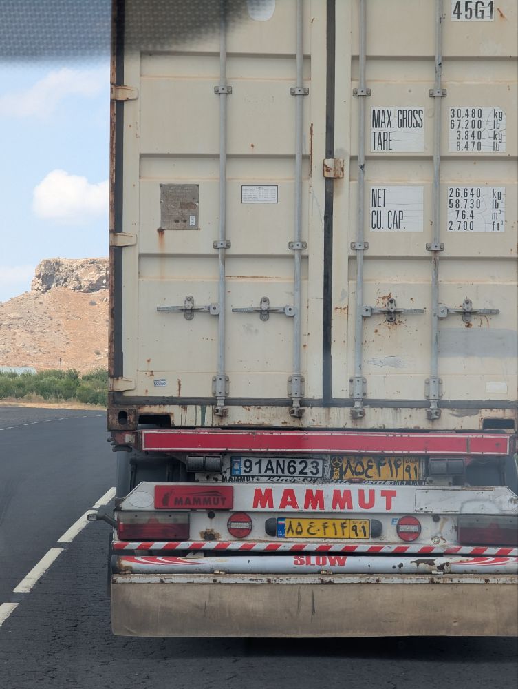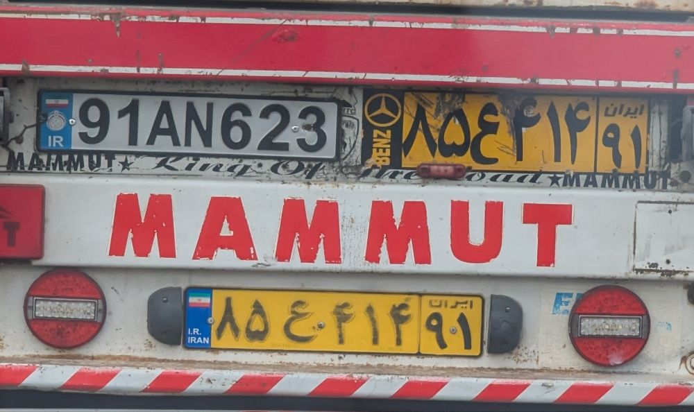 Iranischer LKW vor uns. Befindet sich auf der Strecke Täbris – Eriwan