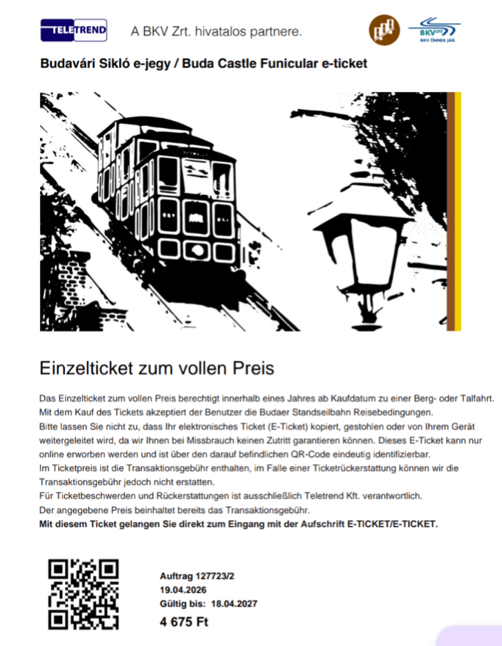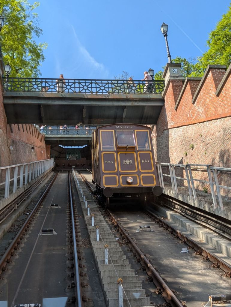 Die ‚Sikló‘ aus 1870 überwindet auf 95 m einen Höhenunterschied von 51m zum Burgberg.