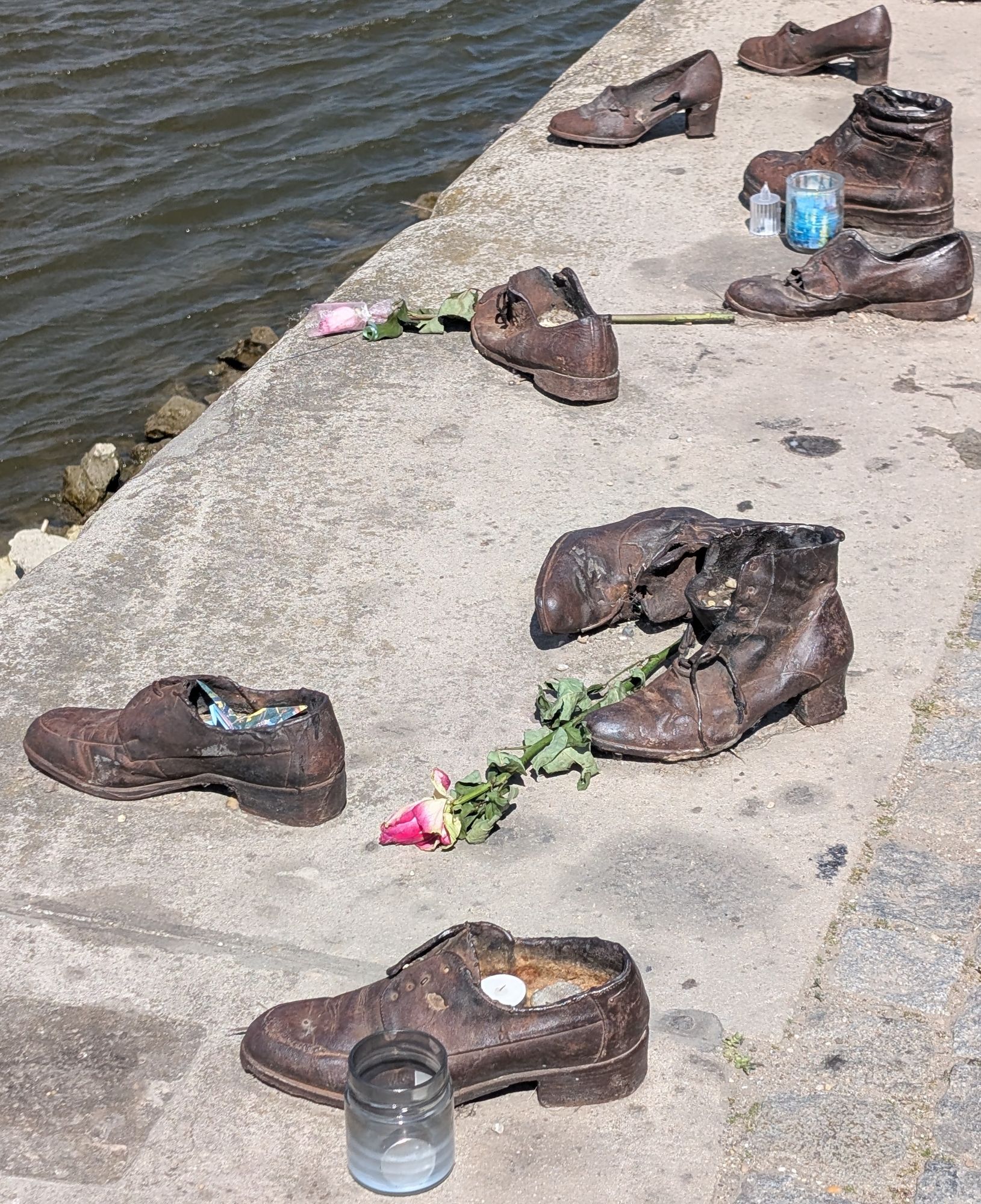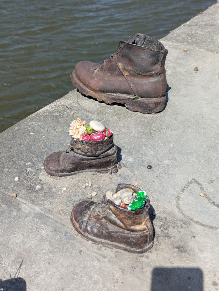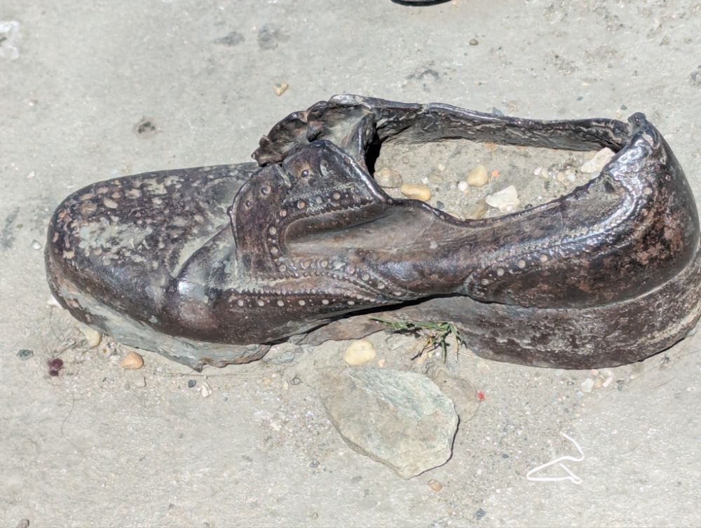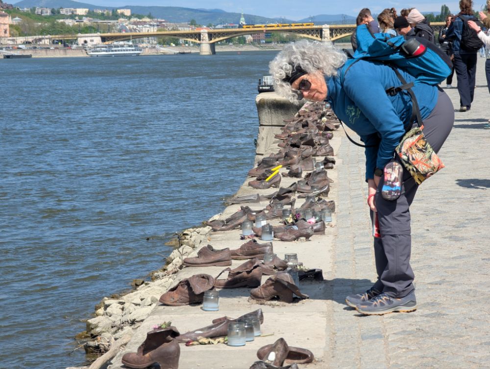 In den letzten Monaten des Zweiten Weltkriegs putschte die Pfeilkreuzlerpartei in Ungarn und riss die Macht an sich. Während ihrer Schreckensherrschaft wurden schätzungsweise 10.000 Menschen auf offener Straße ermordet und etwa 80.000 in Konzentrationslager deportiert. Die zusammengetriebenen Juden wurden oft am Donauufer aufgereiht und in den eisigen Fluss geschossen.
