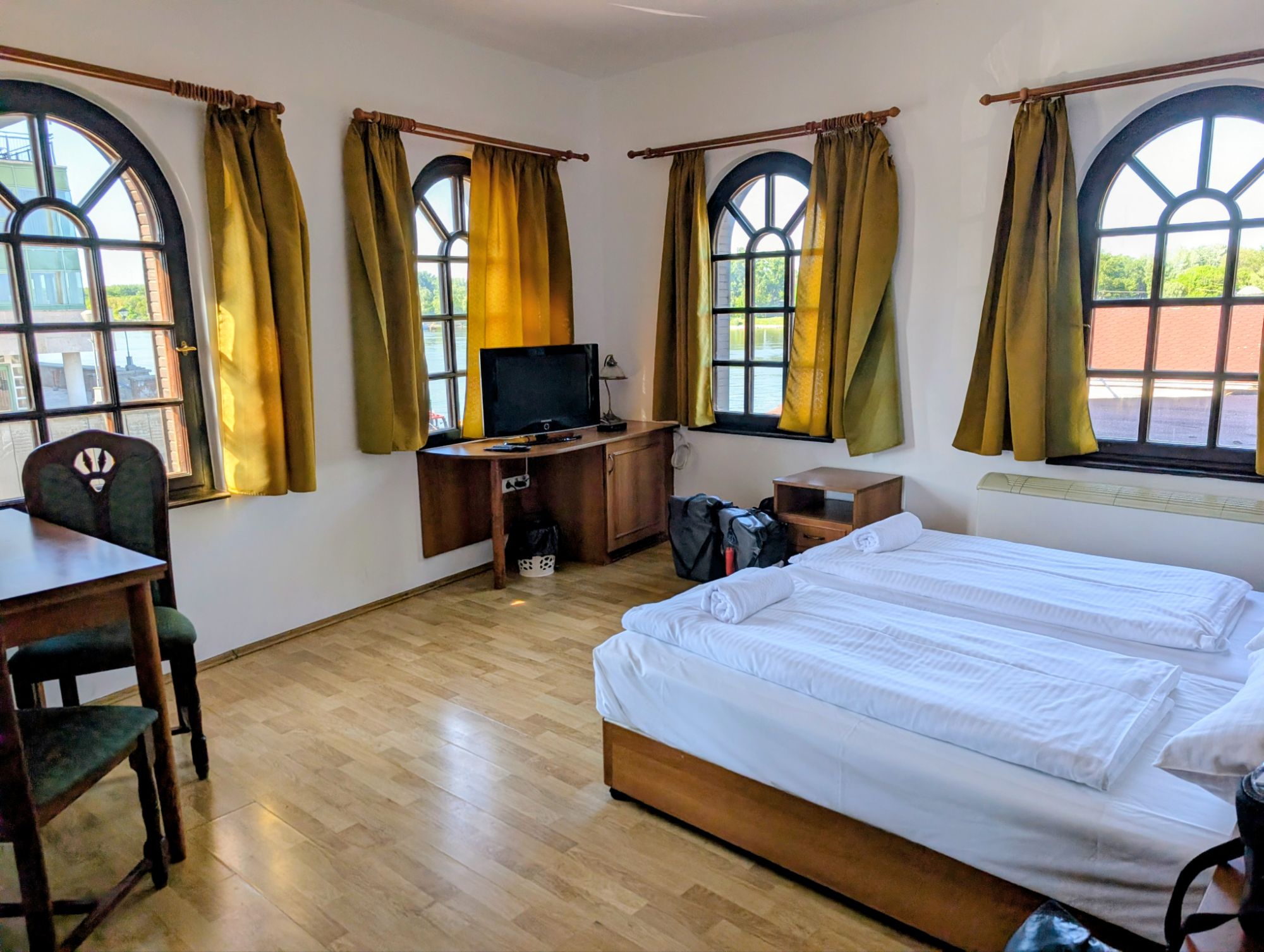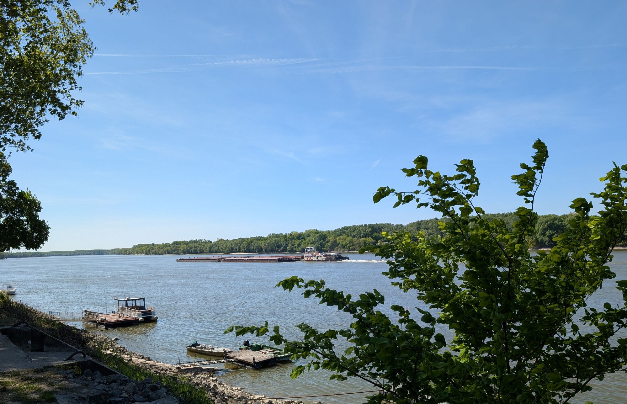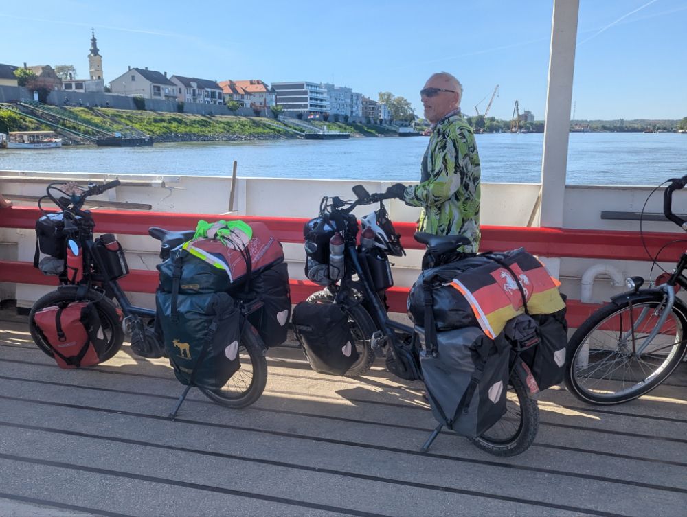 70 von 82 km sind wird auf dem Donaudamm gefahren Die letzte Aktion zum Ziel, Fährfahrt nach Mohács.In unserem heutigen Domizil…… beziehen wir ein hübsches Eckzimmer.